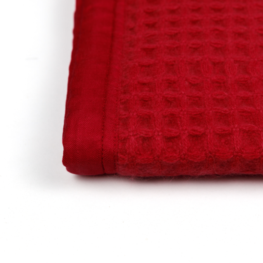 Create a cozy and comforting space with this luxurious silk-spun trim rose red baby blanket. Expertly made by Himalayan artisans using a delicate waffle technique, this blanket embodies plushness, warmth and a lightweight breathable feel. Measuring 26 x 34 inches it’s perfect as a drape over a crib or sofa, providing a gentle soothing touch that stays soft against the skin.