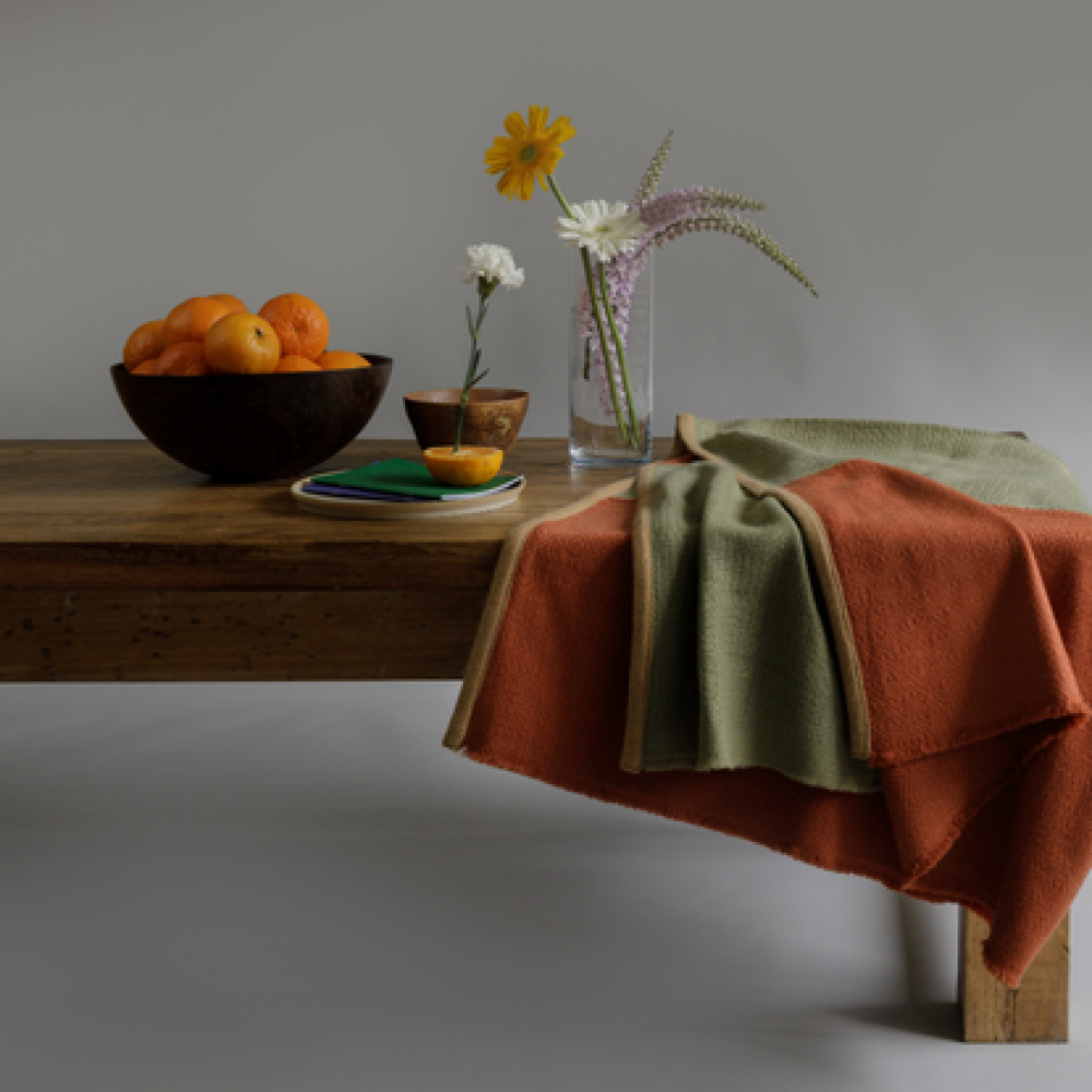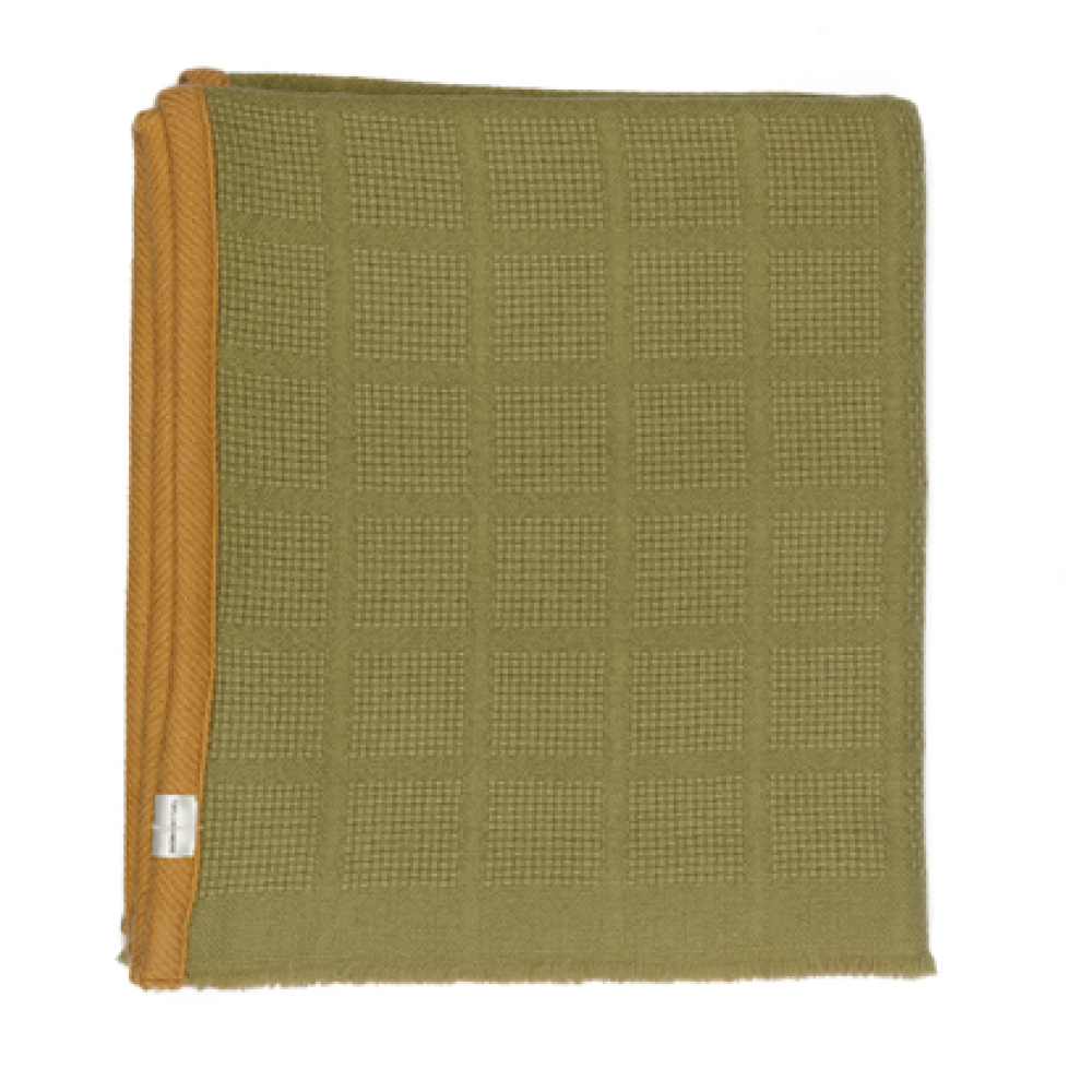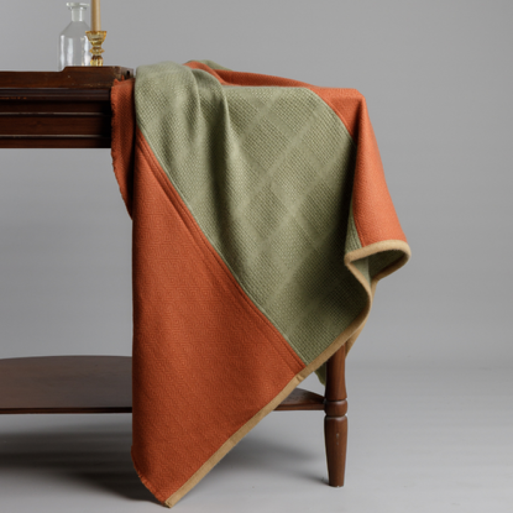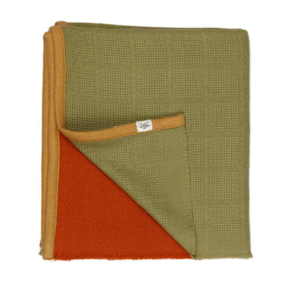 Its combination of green and orange emits a grounded and warm energy that complements every season and decor. Crafted exclusively from the finest raw materials, this throw is a testament to artisanal craftsmanship.