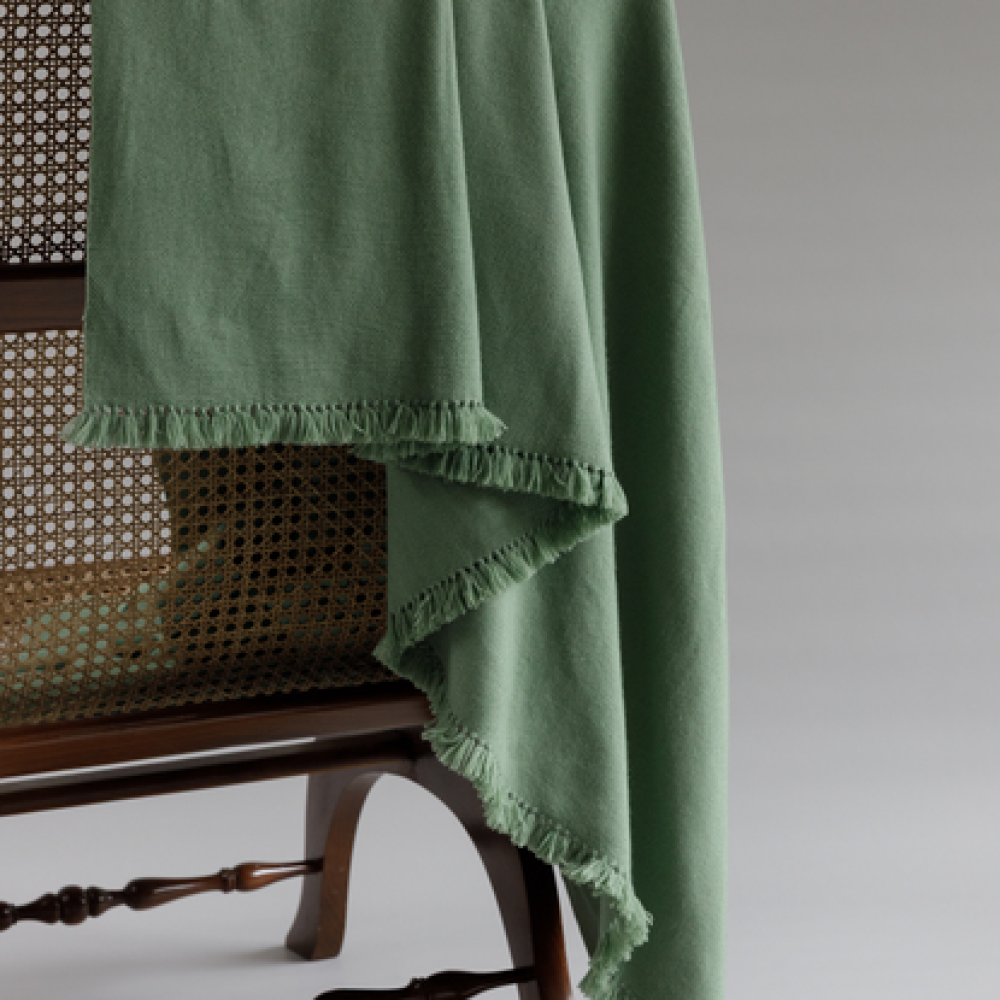 Its calming basil hues imbue a room with grounding and nurturing energy, effortlessly harmonizing with a broad palette of colors and neutrals. This bespoke throw is destined to nurture well-being and become a cherished heirloom for generations to come.