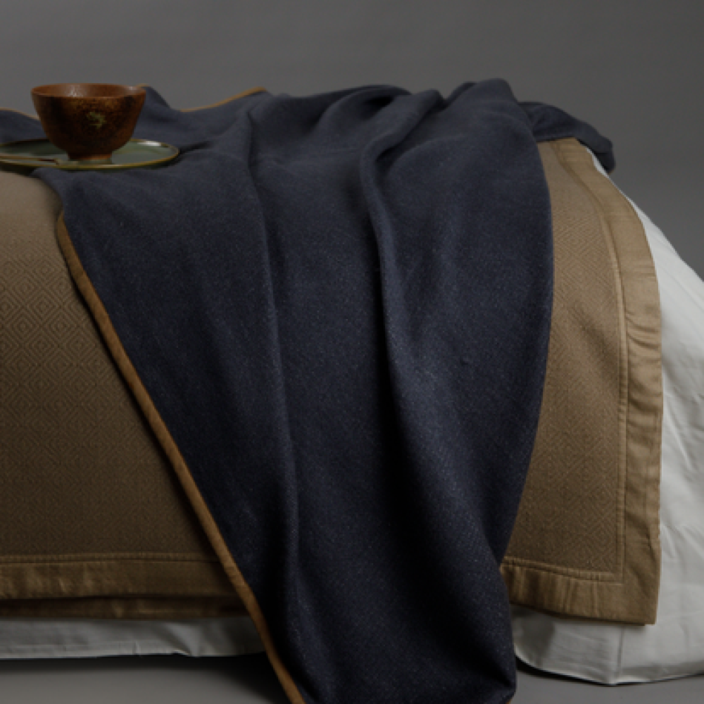 The harmonious ecru and ombre blue palette imparts both warmth and tranquility, effortlessly enhancing a variety of interiors. Its classic colors pair beautifully with warm neutrals, earthy tones, and bold accents, making this bespoke throw a versatile piece.