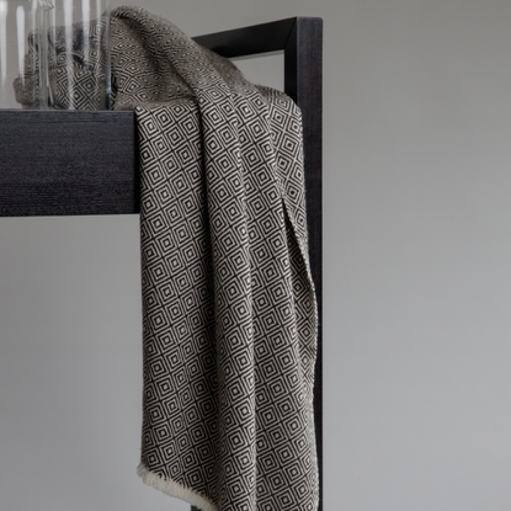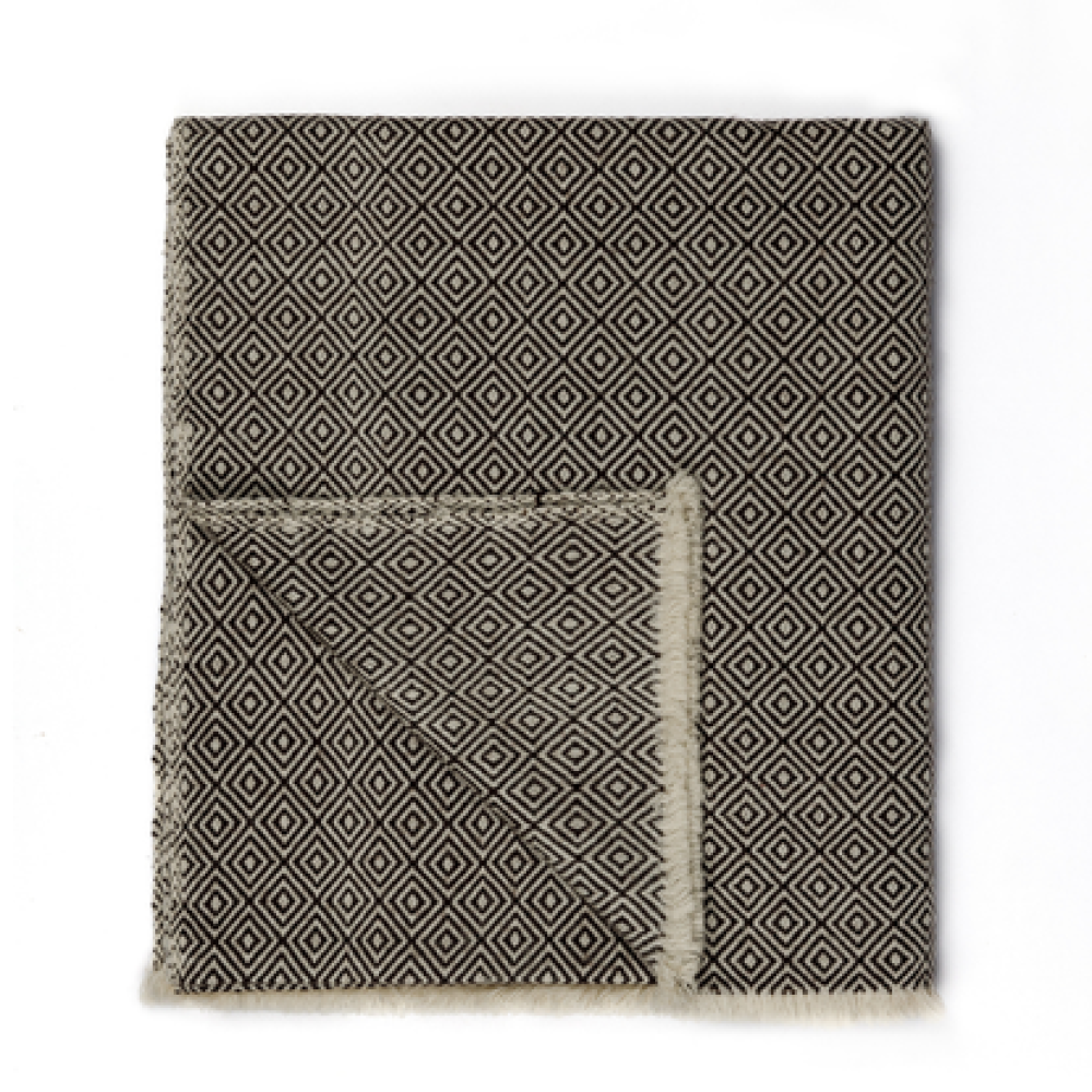 Enhance a room or outfit with this elegant cocca-egret large throw. While it's made from 100% premium cashmere handwoven by Himalayan artisans, measuring 60 x 72 inches, it's the throw's iconic diamond weave that draws in attention. Having a three-dimensional texture and finished with a sleek crew cut trim, this artisanal throw effortlessly merges artistic flair with timeless sophistication.