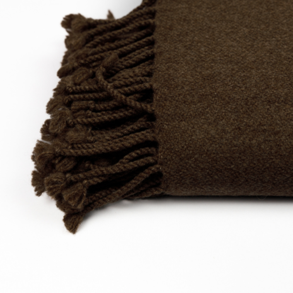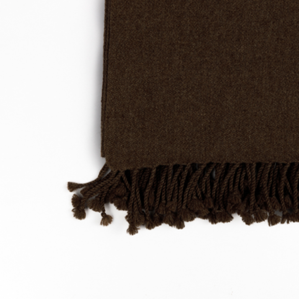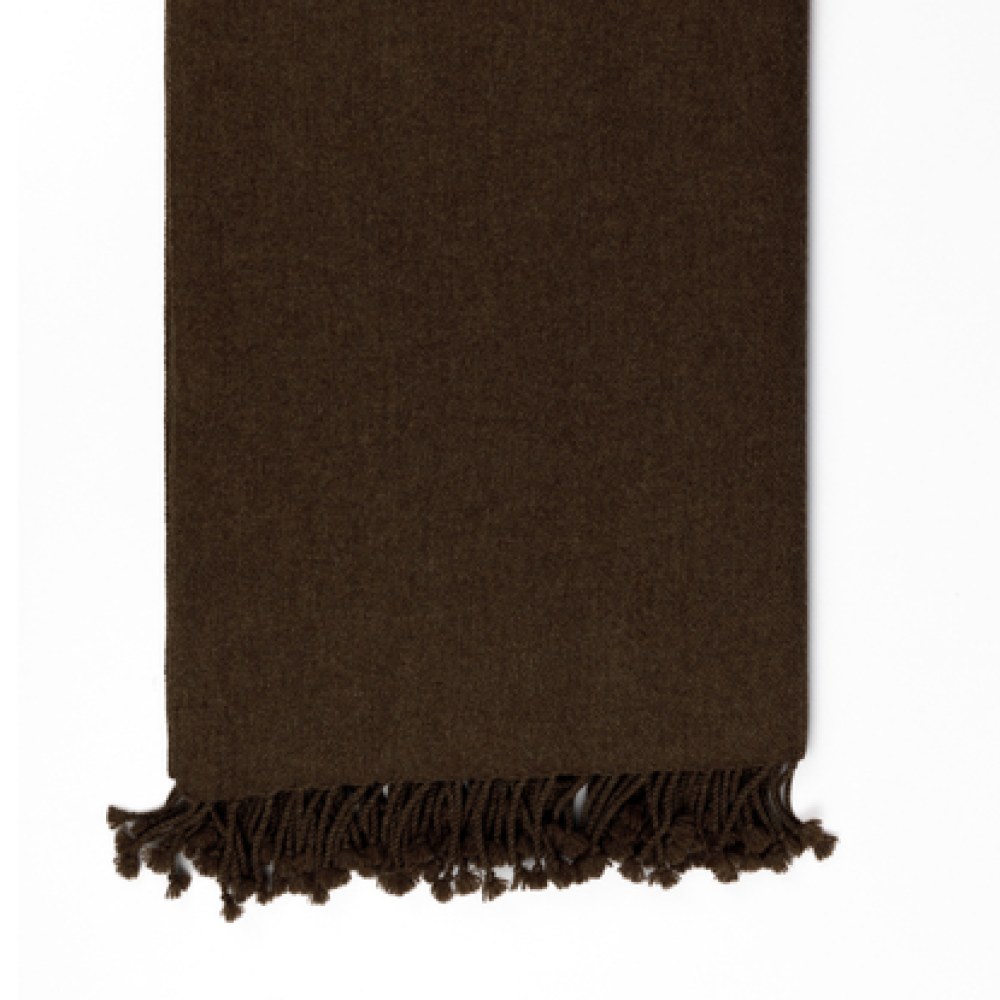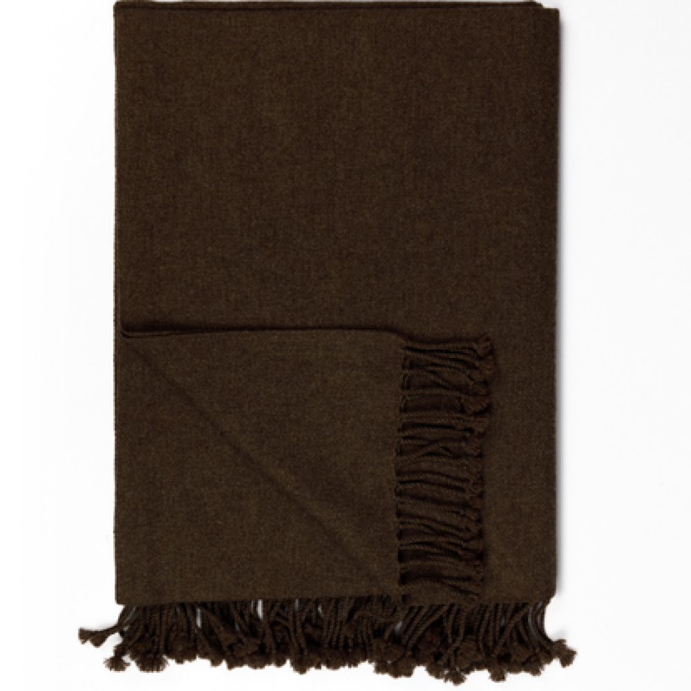 Embrace sustainable luxury and comfort with this exquisitely handwoven throw in a refined natural brown hue. Handwoven using a bespoke blend of 50% cashmere and 50% Himalayan yak wool by artisans, this is a luxuriously soft and lightweight piece. Measuring 50 x 70 inches, the throw is meticulously woven using the intricate weft back technique and finished elegantly with twisted tassels—an eco-conscious masterpiece that retains its sophisticated allure for years.