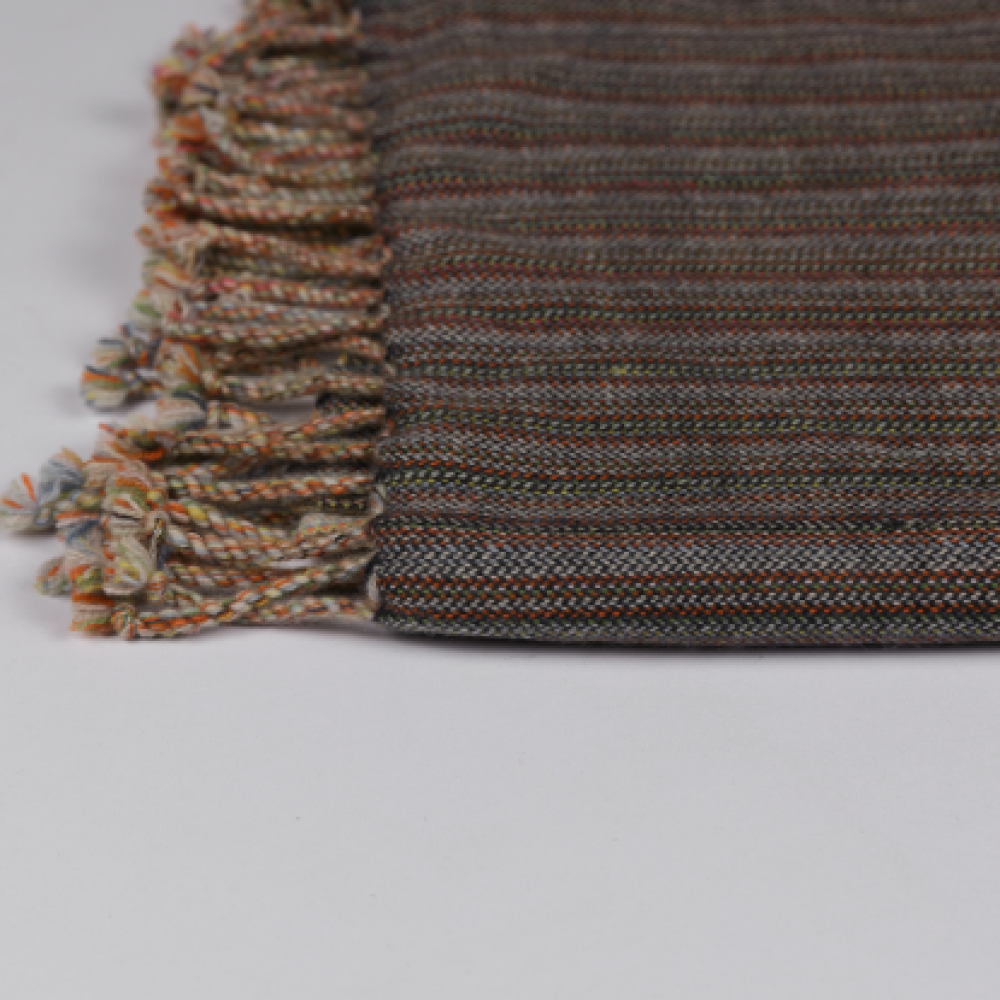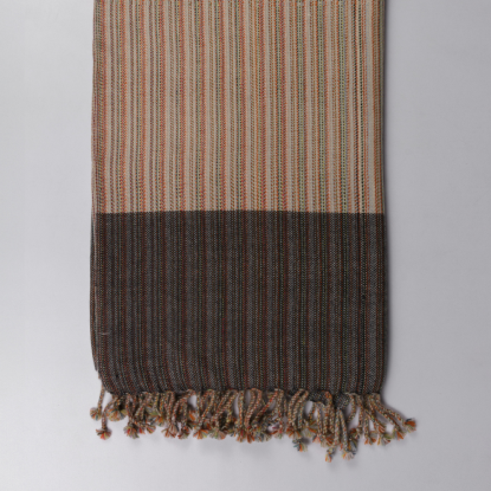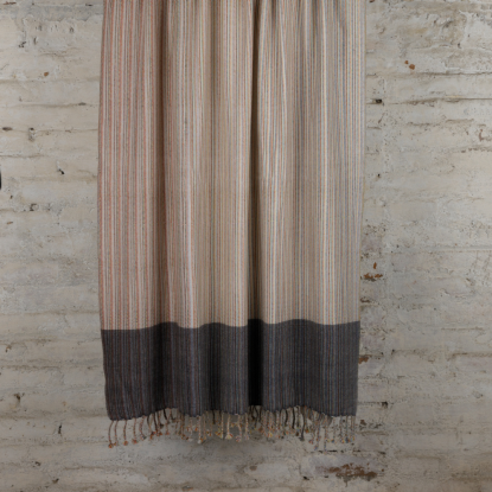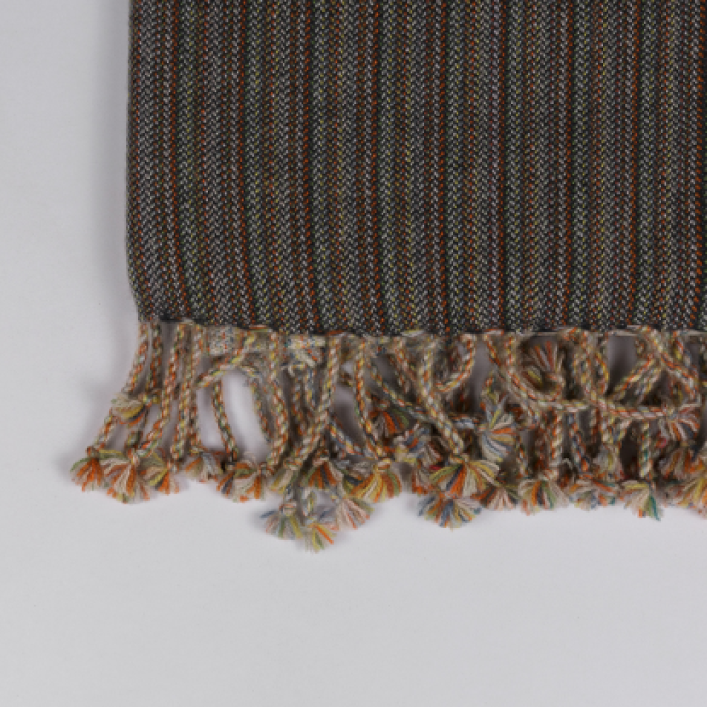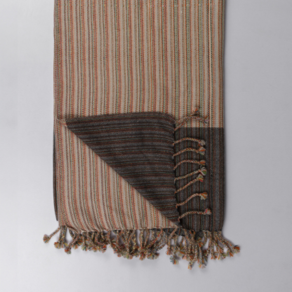 Refine an outfit with this sophisticated, timeless, multi-colored shawl. Intricately handwoven using 100% premium cashmere by Himalayan artisans, it’s a chic,timeless, and versatile accessory. Measuring 40 x 80 inches, this piece is crafted using a refined weft back technique and finished with twisted tassels, combining durability with soft elegance.