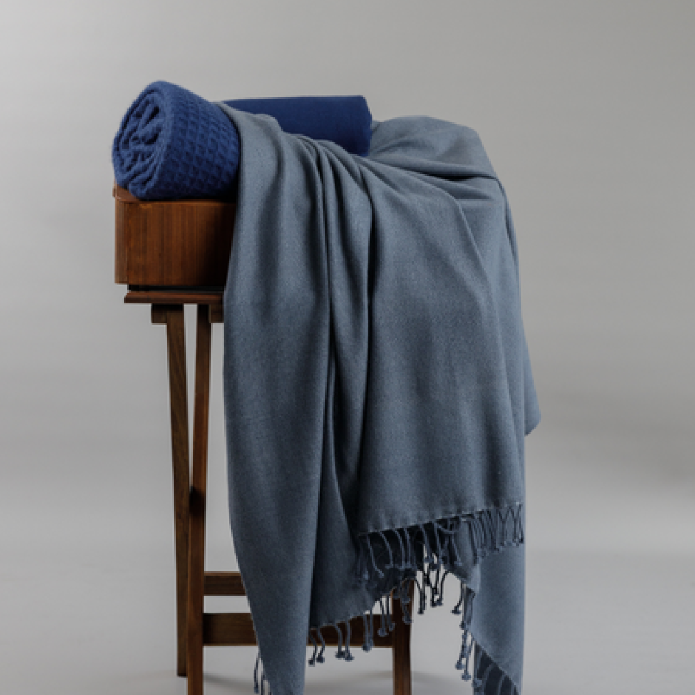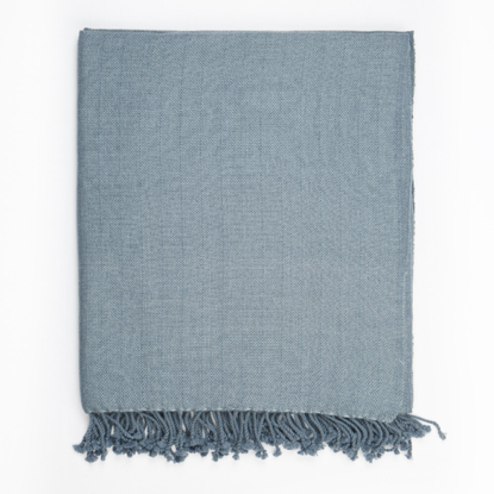 Add a tranquil touch to a space with this high-rise and ombre blue large throw. Handwoven using 100% premium cashmere by Himalayan artisans, it’s a sumptuously soft piece that offers a timeless elegance. Measuring 60 x 72 inches, woven using a weft back technique and finished with twisted tassels, this is a chic piece that effortlessly pairs with most interiors.