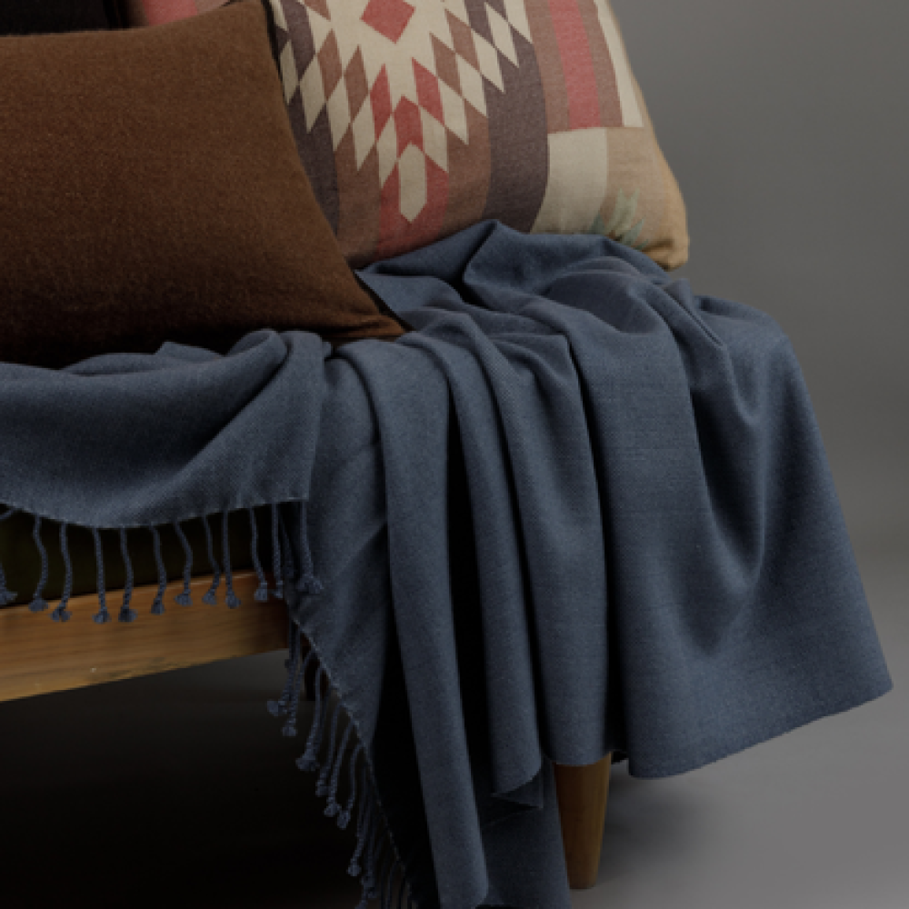 The delicate gradient of Ombre Blue, combined with the understated neutrality of High Rise, evokes a peaceful ambiance that promotes relaxation and calm. This bespoke throw serves as a refined accent that enhances any room, embodying enduring style and heirloom quality.