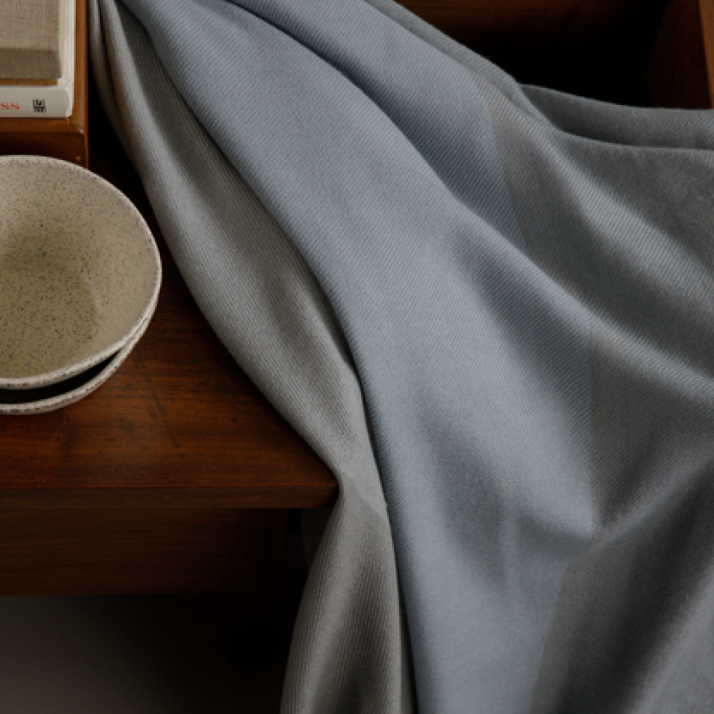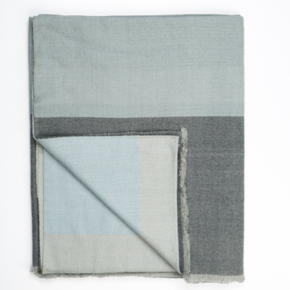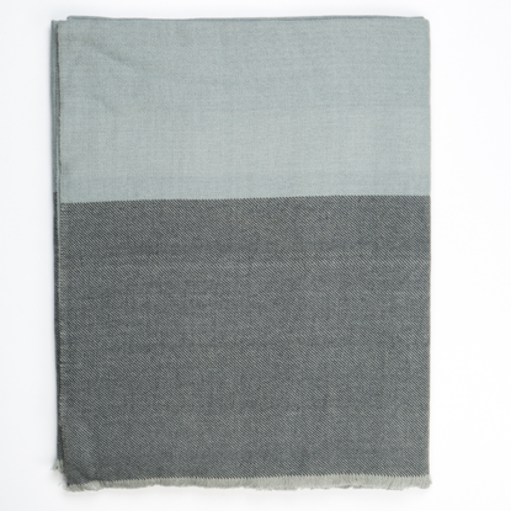 Drape or layer up in this effortlessly elegant drizzle and charcoal grey large throw. Handwoven using 100% premium cashmere by Himalayan artisans, this is a soft and plush piece, gentle on the skin. Measuring 68 x 75 inches, this piece is woven using a twill technique and finished with crew-cut tassels, embodying contemporary luxury.