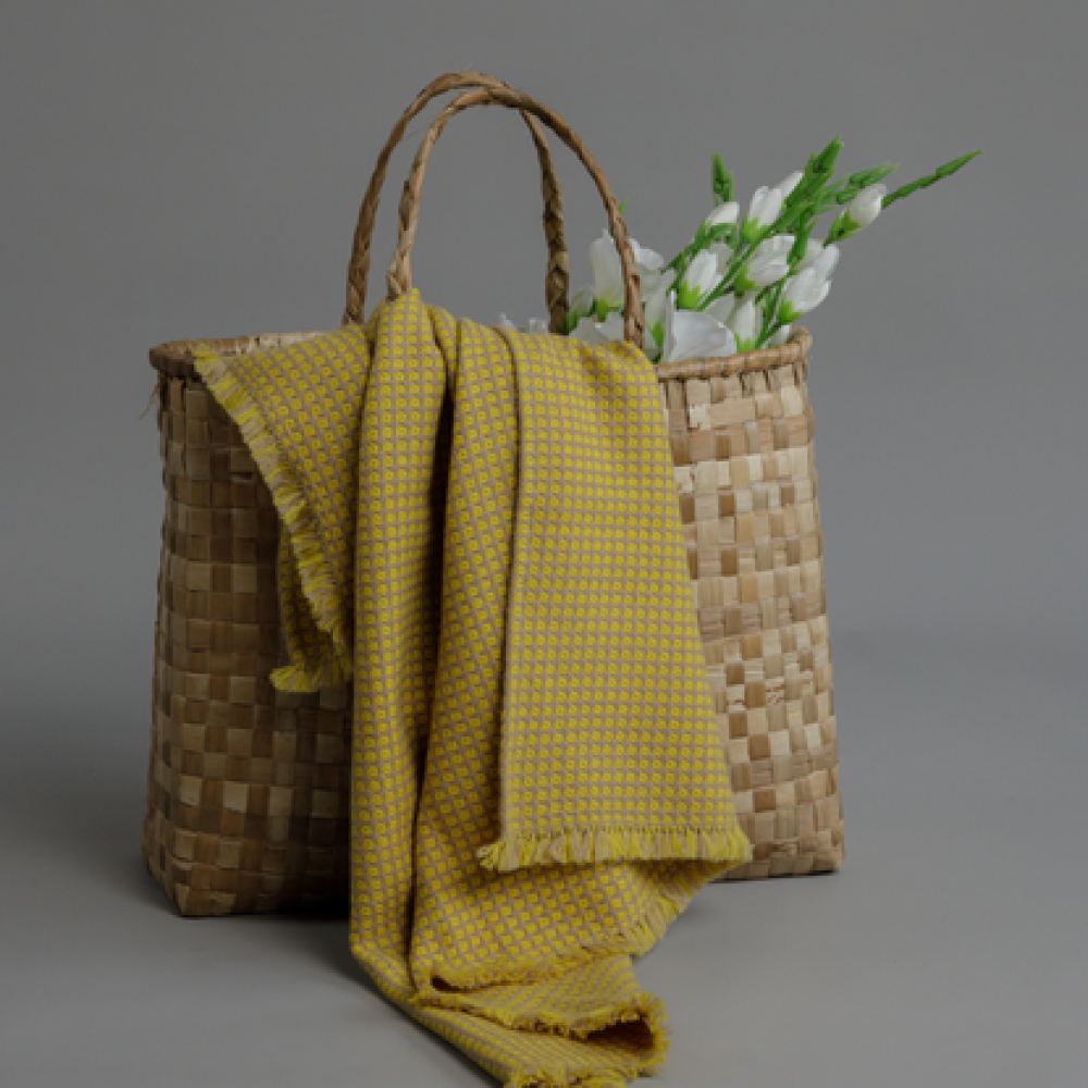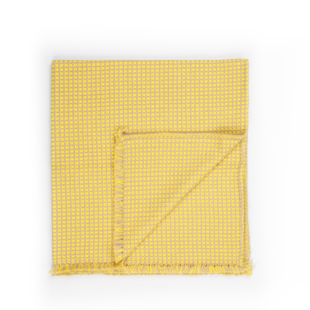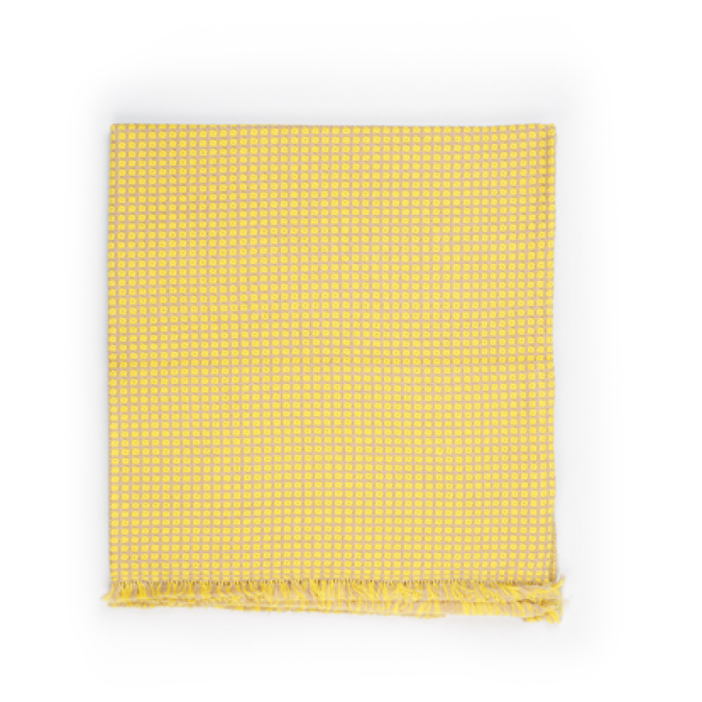 Add a layer of light to a crib, living area, or bedroom with this premium nougat-maize baby blanket. Handwoven by Himalayan artisans from 100% cashmere, this blanket invites warmth and positivity. Measuring 29 x 32 inches, woven in a mesh weave and framed with a single-knot trim, this is a piece with resilient fibers that maintain their shape, making it a cherished heirloom for generations to come.