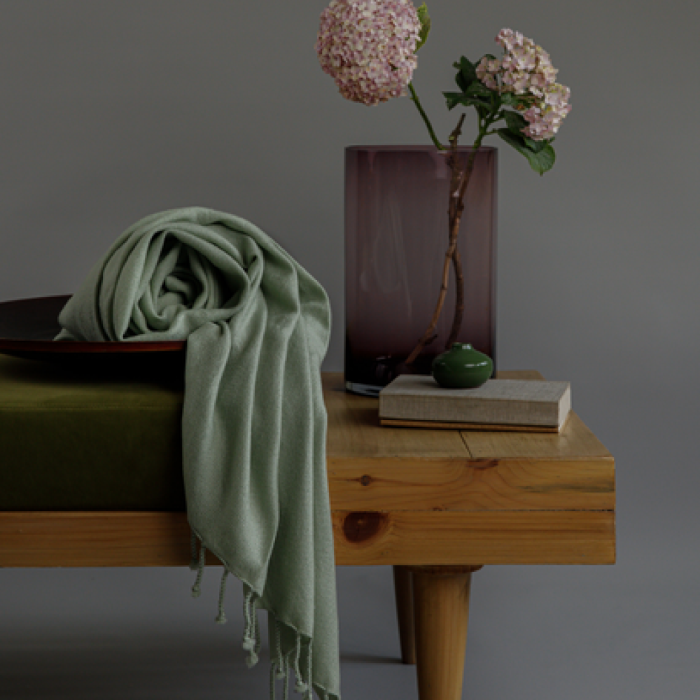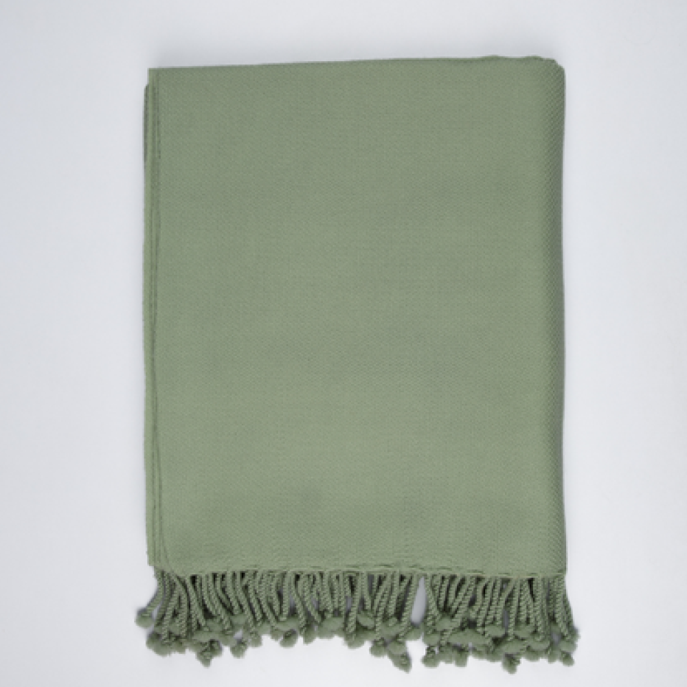 With a serene, fog-green palette, this throw enhances various interiors, from vintage to contemporary aesthetics. This throw offers a tranquil focal point that invites relaxation and refinement, being the perfect finish to furniture or an outfit.