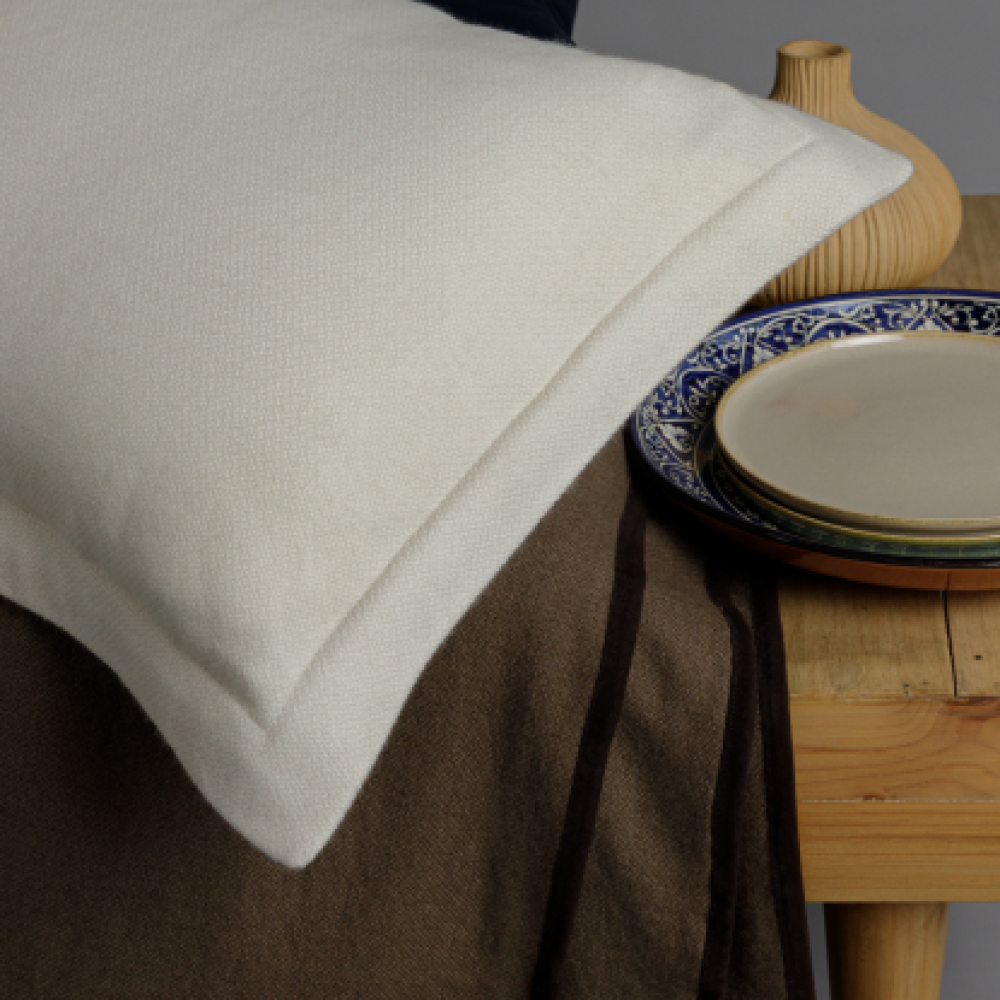 Sink back into a sumptuously soft ecru throw pillow. Handcrafted using 100% premium cashmere by Himalayan artisans, it's a breathable piece that has temperature-regulating properties, encouraging an effortless, restful sleep.