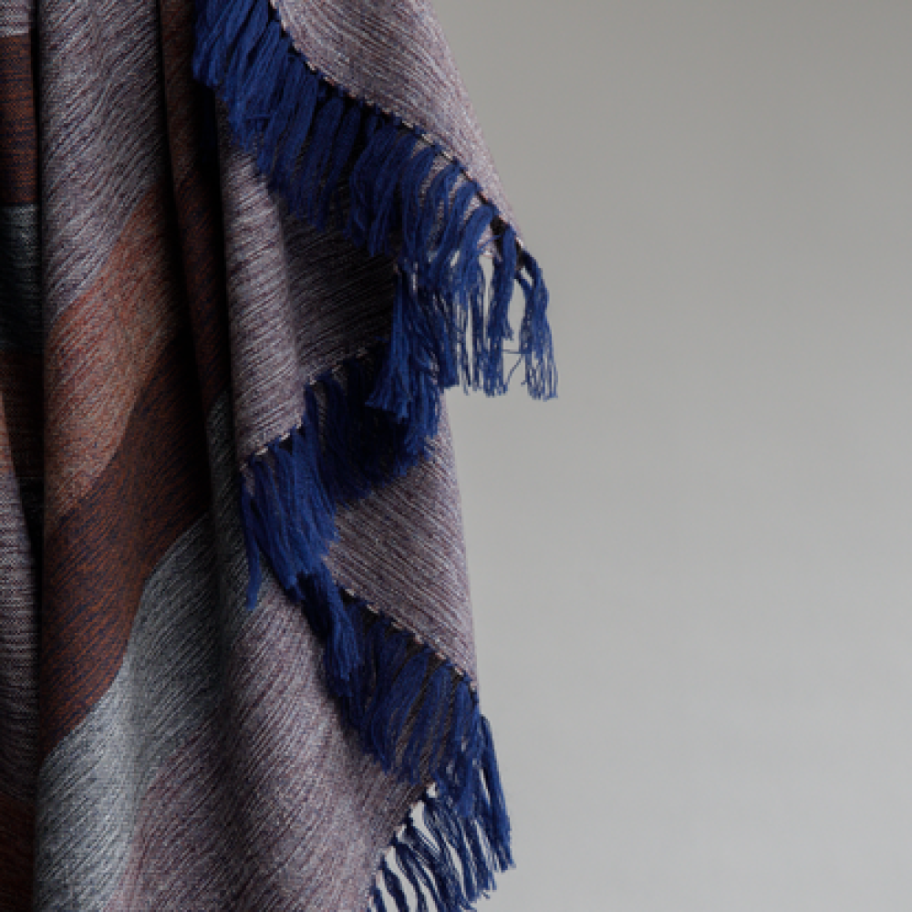 Available in a classic combination of baked clay, sequoia, pewter, berry conserve and accented by a deep cobalt single knot trim, it’s a piece perfect to wrap up in. This curated color palette adds a sense of refined calm to any setting it sits in.