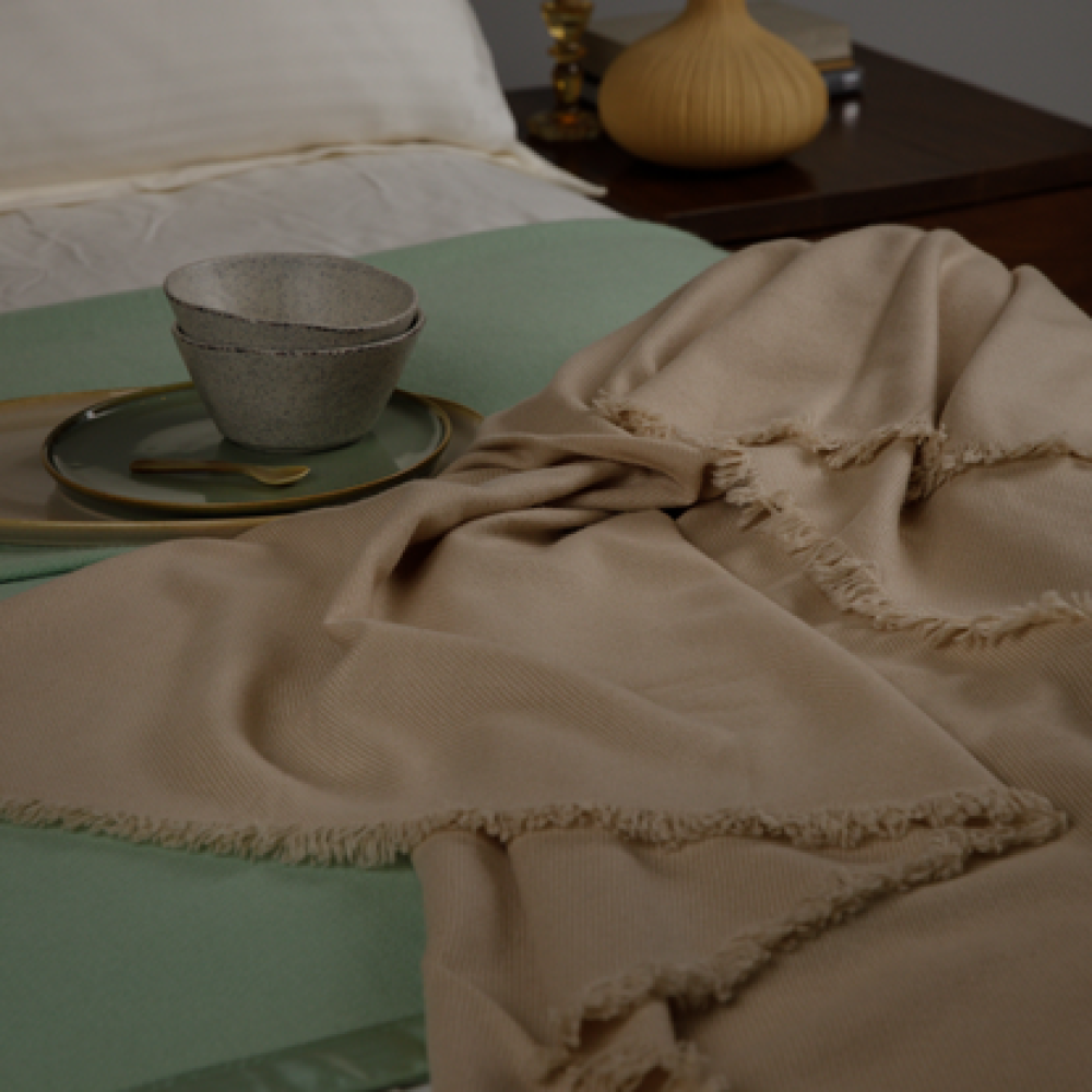 Relax in this classic contemporary multi-colour large throw. Made using a bespoke blend of 60% cashmere and 40% wool, handwoven by Himalayan artisans, it’s a timeless piece perfect as a furniture drape or an accessory. Measuring 60 x 72 inches, handwoven gauze weave and finished with a single knot trim, it’s a piece that offers luxurious softness and temperature-regulating characteristics.