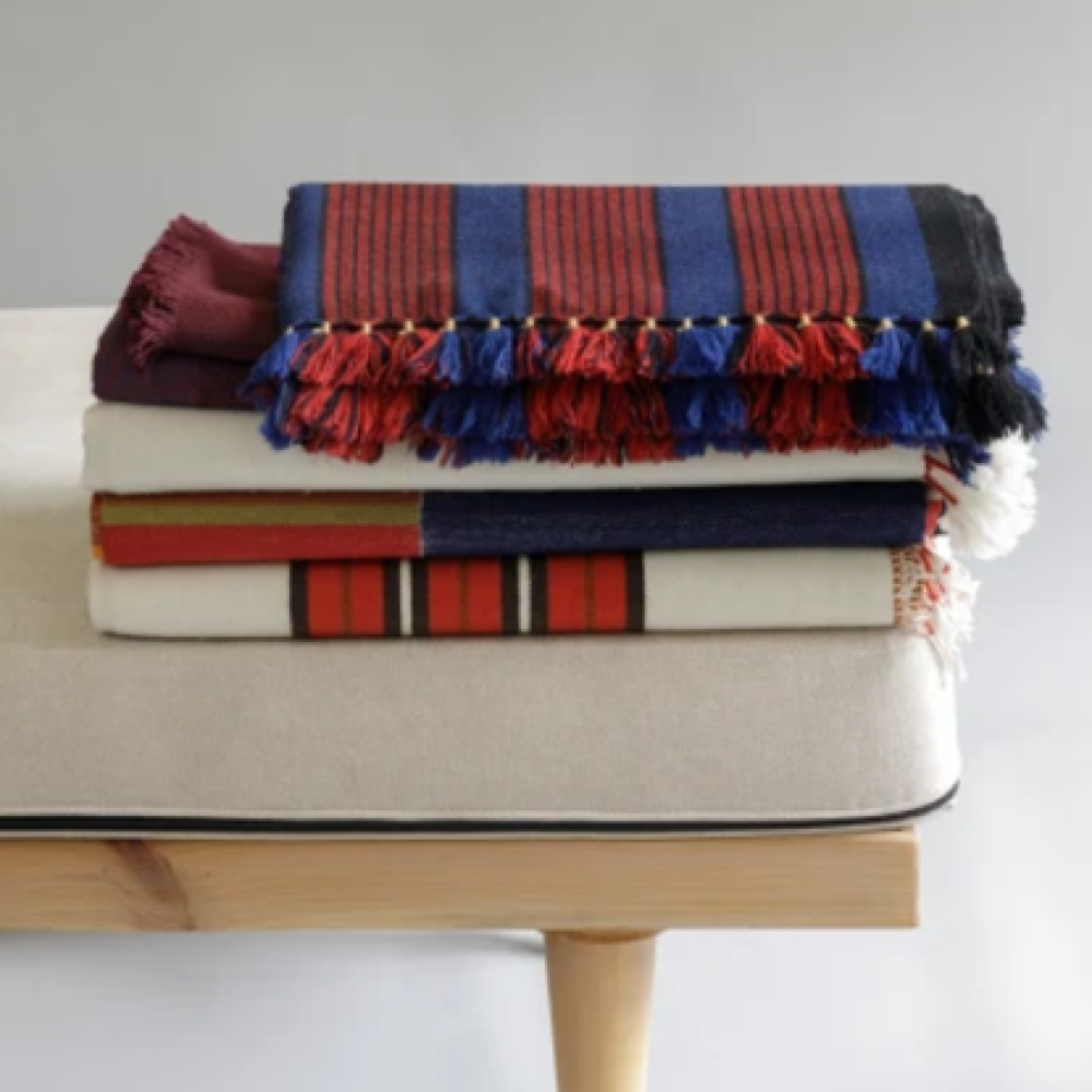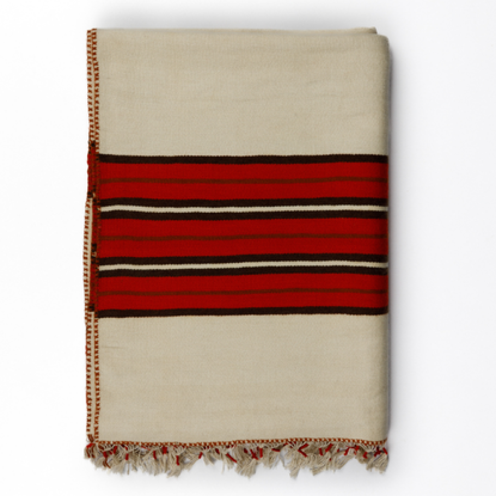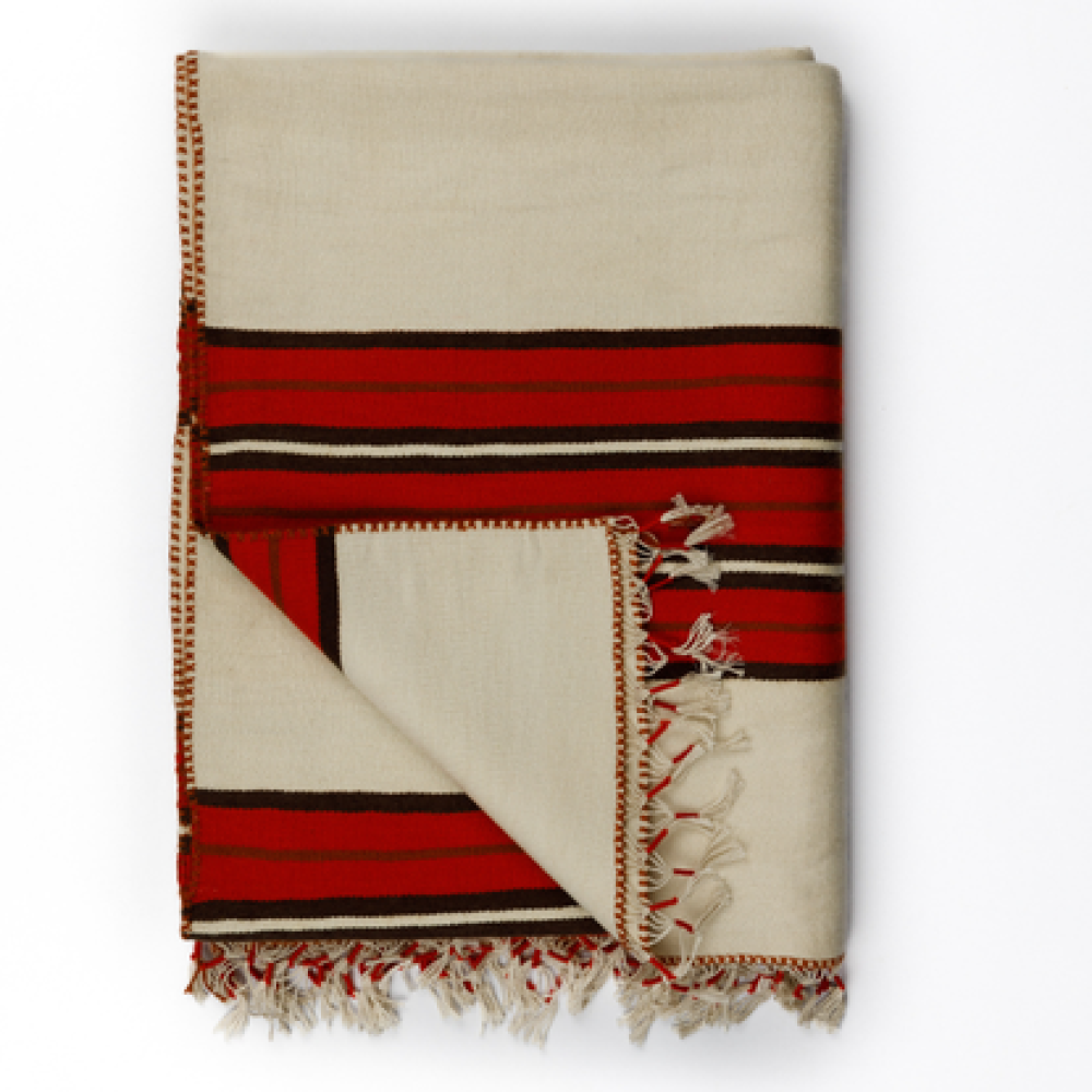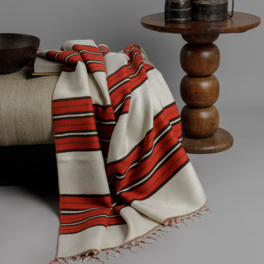 Enhance the ambiance of a living space with this culturally rich and contrasting red and white Navajo-inspired throw, a captivating blend of cultural heritage and contemporary style. Handcrafted by skilled Himalayan artisans from a luxurious 90% cashmere and 10% silk blend, this incredibly soft, hypoallergenic throw is gentle on the skin and exudes premium quality. Measuring 54 x 72 inches and woven using a distinctive Navajo-inspired technique, its plush texture is beautifully finished with a refined whipstitch trim.