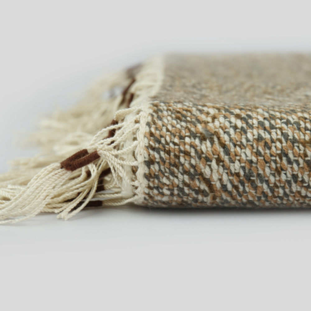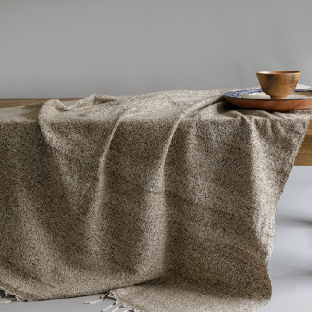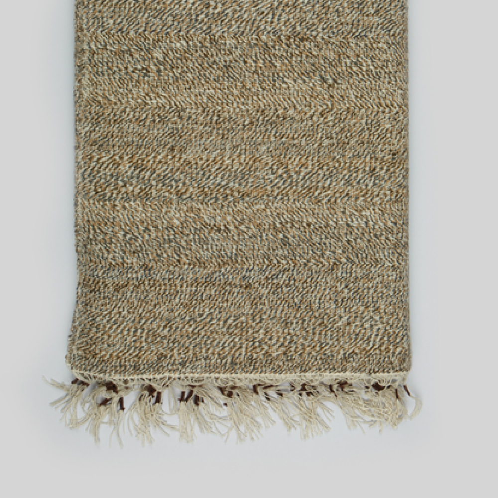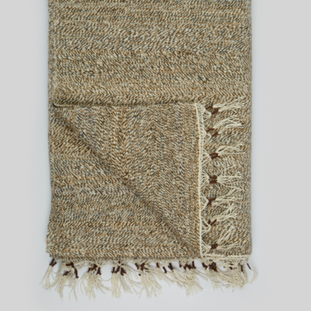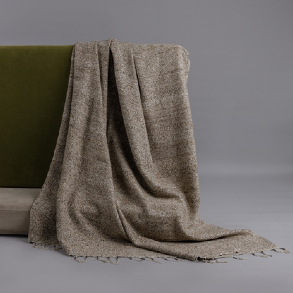 Dress a space with this minimal multi-color melange throw. Handwoven using a bespoke blend of 60% cashmere, 30% camel hair, and 10% silk by Himalayan artisans, this is a graceful and sumptuously soft piece against the skin. Measuring 50 x 70 inches, this intricately woven throw is finished with naga tassels and features different blends of fibers that are incredibly plush and resilient, making it an heirloom-quality piece.