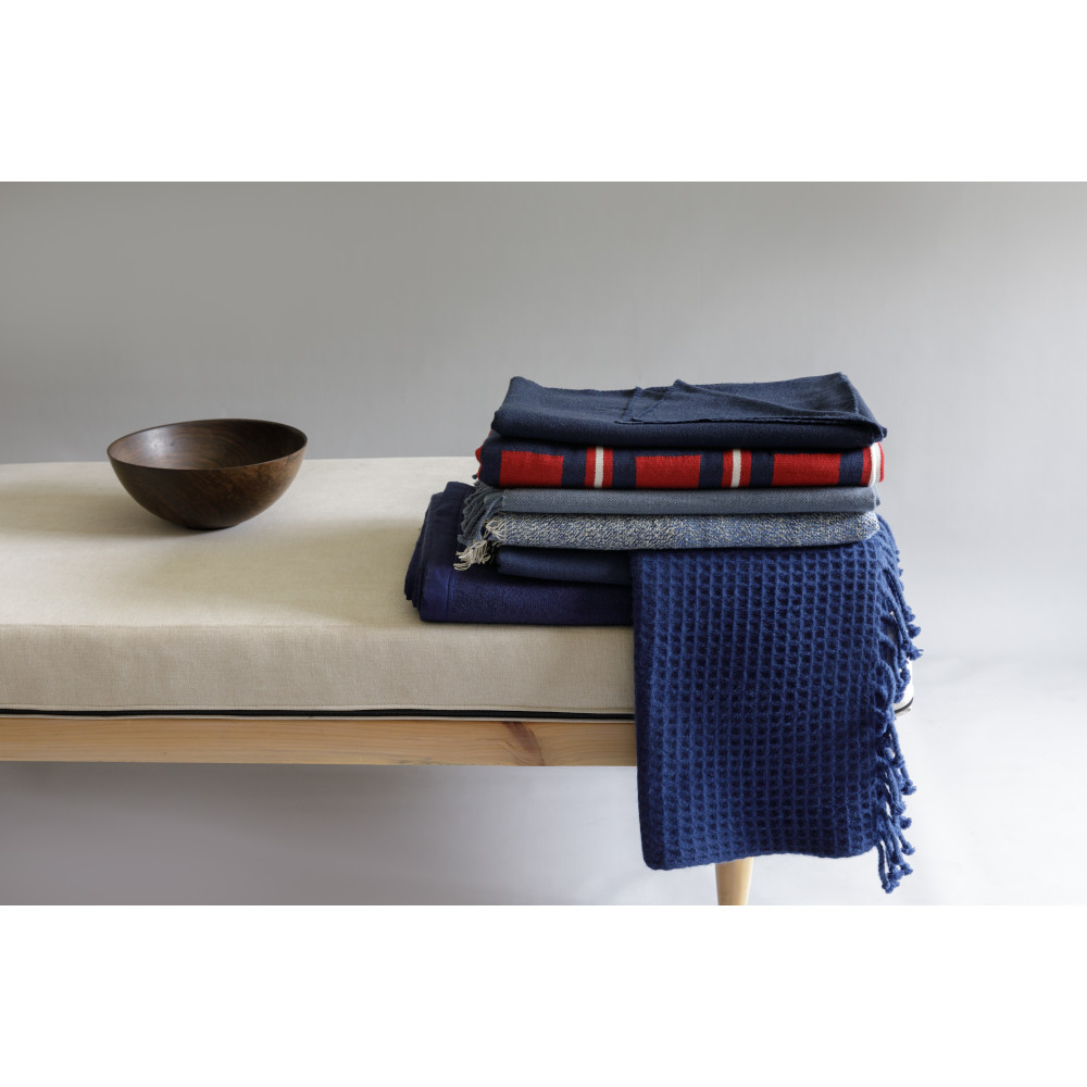 The complementary hues of deep Regatta blue and warm, earthy Ecru imbue the space with natural warmth and openness, offering a timeless sophistication. Regatta’s rich depth fosters calm and focus, while Ecru’s softly nuanced warmth adds organic elegance and versatility. Together, they create a refined palette that transcends interior trends, ensuring this bespoke throw remains a cherished heirloom piece.
