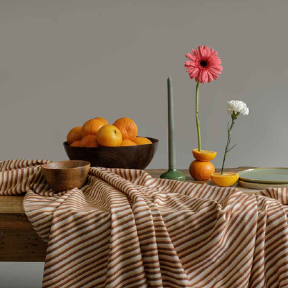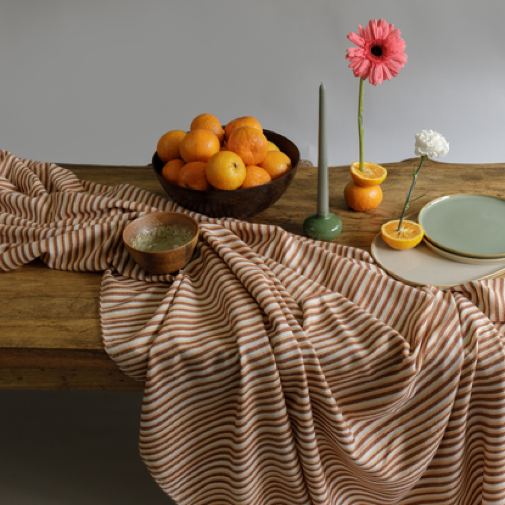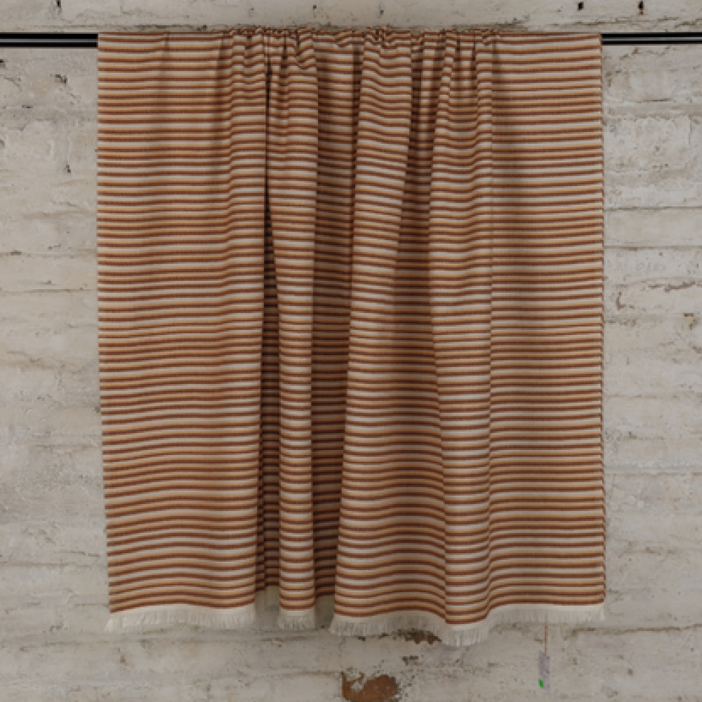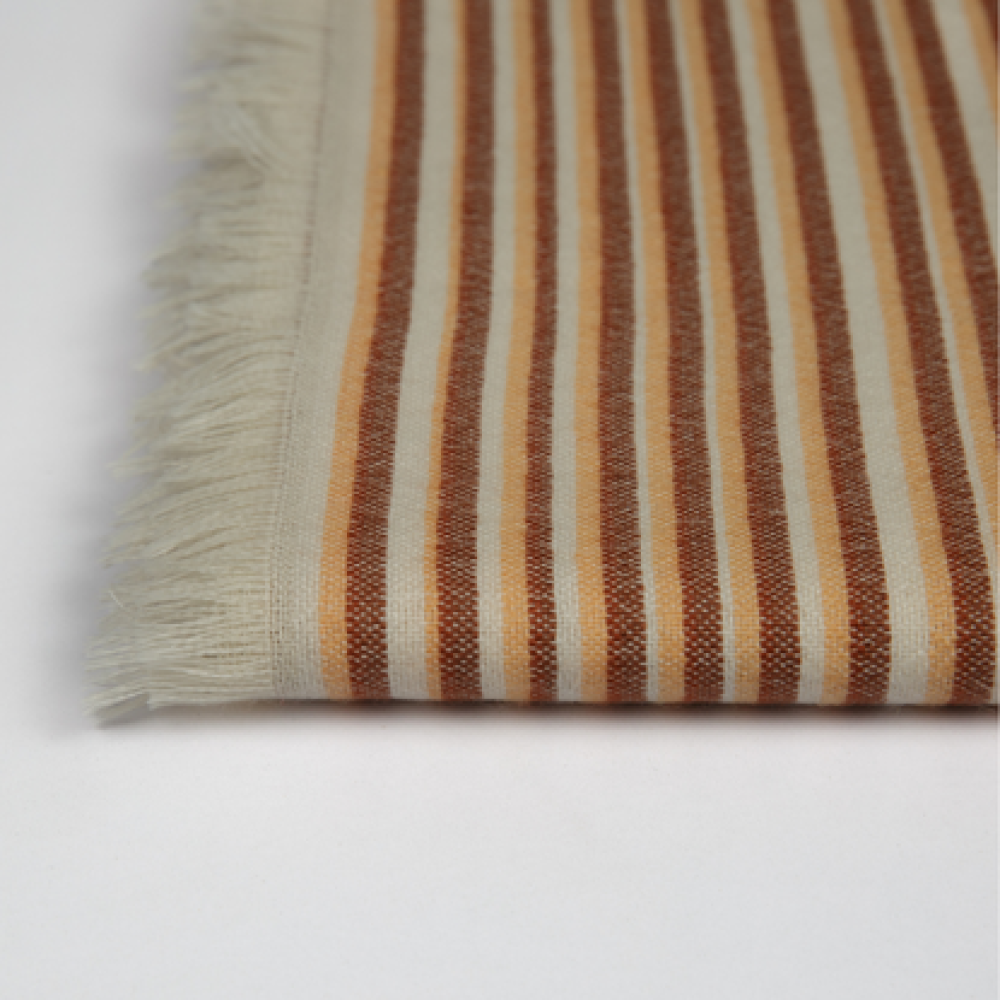 Enrich your space with this elegant, subtle, striped large throw full of natural orange hues. Intricately handwoven from premium 100% cashmere by master Himalayan artisans, this piece embodies luxury. Measuring 60 x 72 inches, woven using a 2 pedal technique, the artisan craftsmanship is preserved and maintained after multiple uses of this superior, soft, and elegant drape.