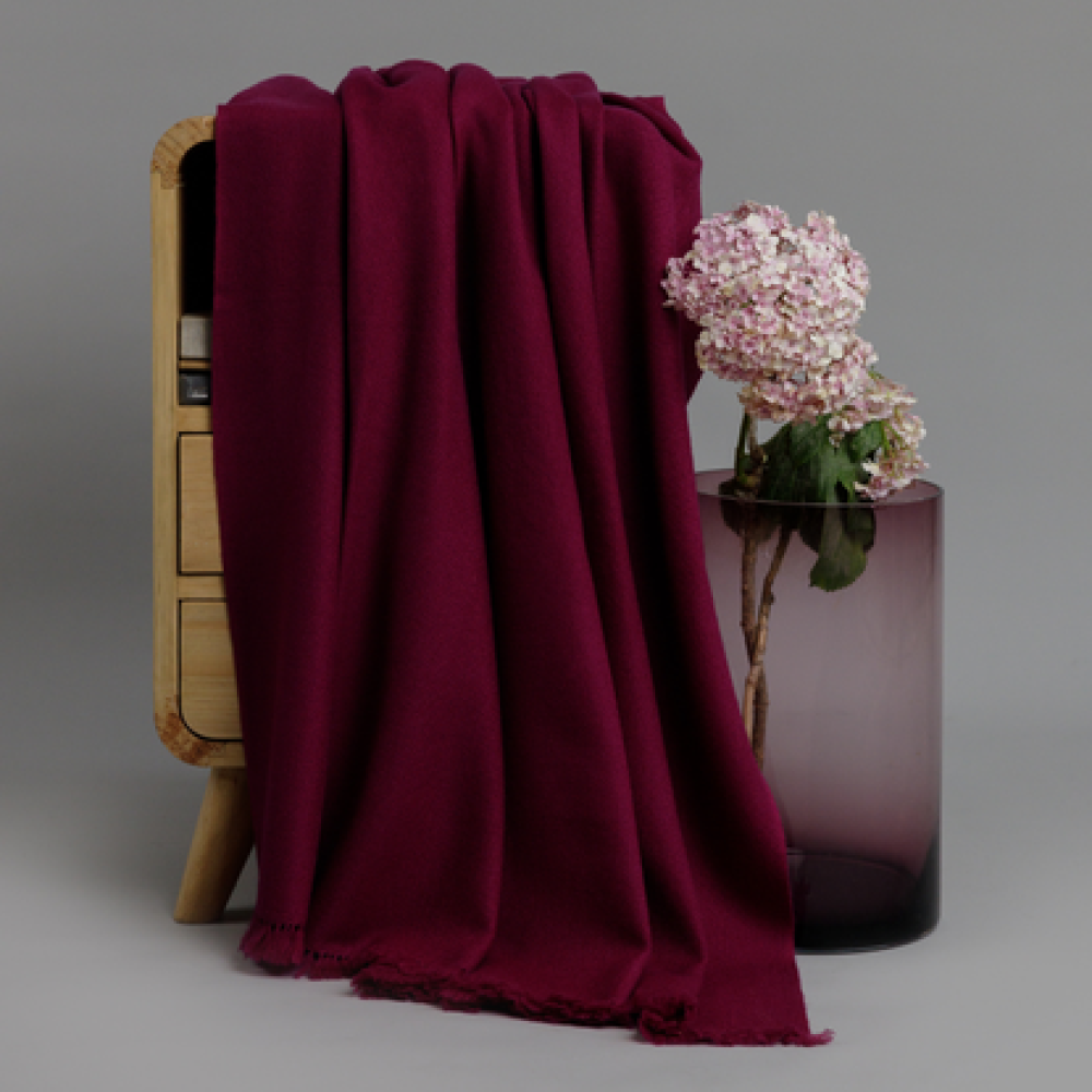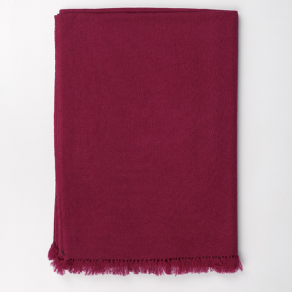 Elegantly embrace the plush comfort of this luscious raspberry throw. Handwoven using 100% premium wool by Himalayan artisans, it’s a luxuriously soft and rich piece. Measuring 50 x 70 inches, this handwoven throw features a twill weave and is finished with crew-cut tassels, making it an iconic piece that’s temperature-regulating, sustainable, and hypoallergenic.