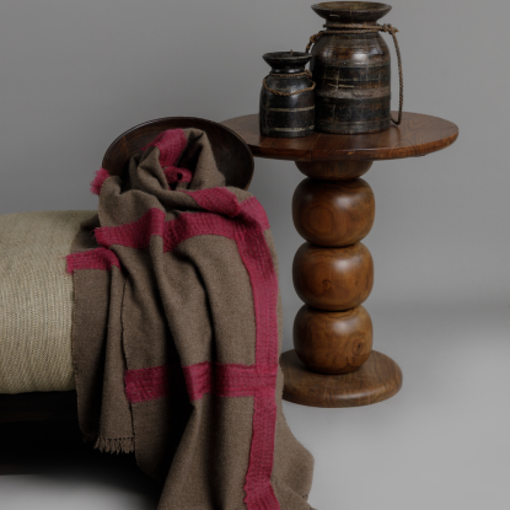 Add a functional and elegant touch to a space with this stunning natural brown stole. Handwoven using a bespoke blend of 50% cashmere and 50% yakwool by Himalayan artisans, it’s a unique piece that invites comfort, superior strength, and exceptional insulation. Measuring 30 x 82 inches, this piece is woven using an intricate weft-back technique and finished with classic crew-cut tassels, making it a timeless layer or drape.