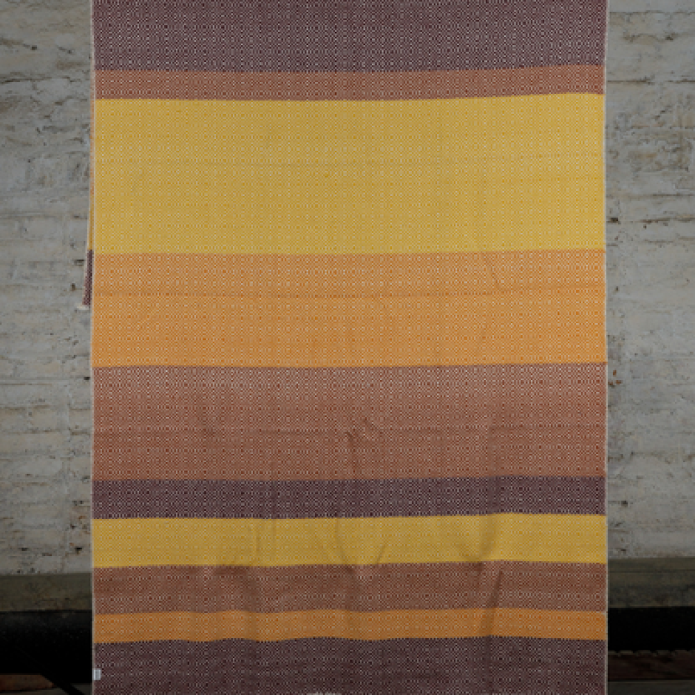 Enhance your bedroom with this luxurious striped runner, expertly handwoven from 100% pure wool by Himalayan artisans. Crafted using a sophisticated diamond weave and finished with a timeless crew neck trim, this soft runner measures 50 x 100 inches and offers a refined elegance to any bedroom.