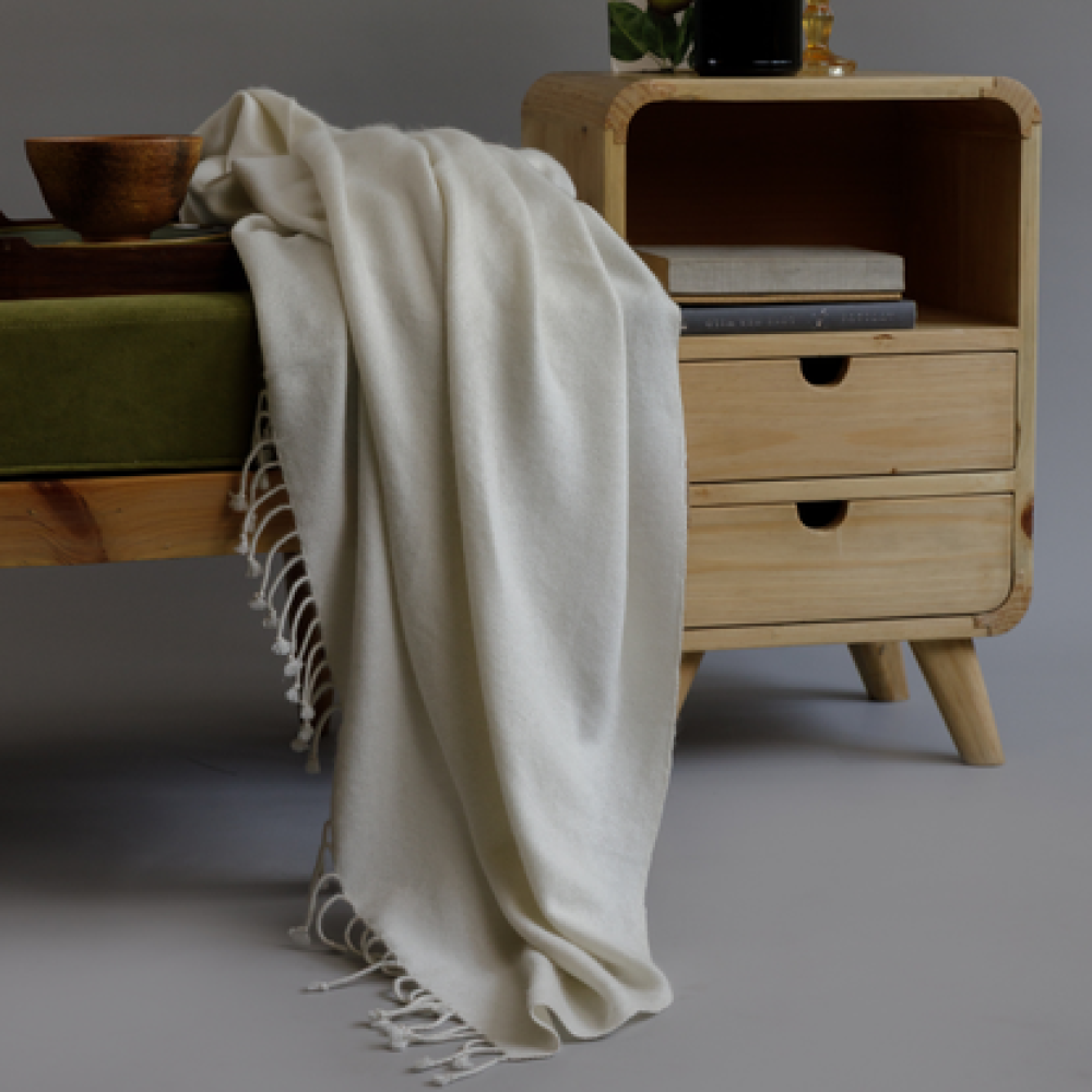 The versatile, neutral Egret hue harmonizes effortlessly with any color palette, texture, or design scheme, making this throw a seamless and graceful complement to diverse interiors. Exuding an aura of quiet luxury, it opens up a space with its bright shade, inviting warmth and positivity.