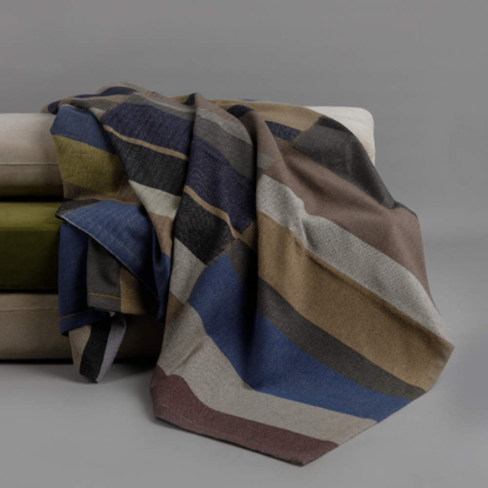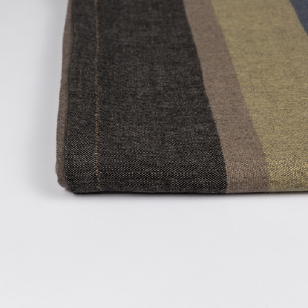Its neutral multi-striped color palette adds a calming and grounded touch to a space, without overpowering it. This artisanal piece serves as a quiet focal point, preserving ancient craftsmanship and luxurious textiles of heirloom quality.