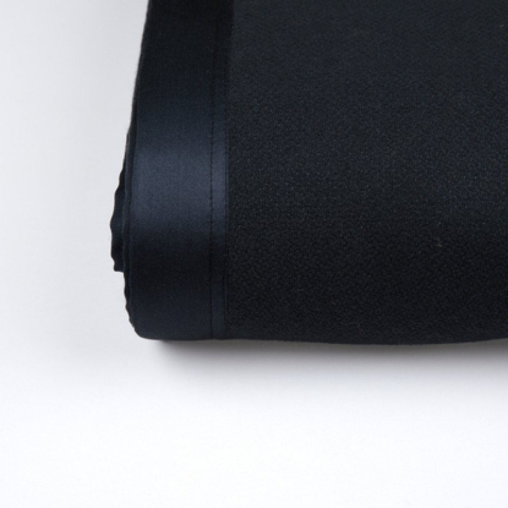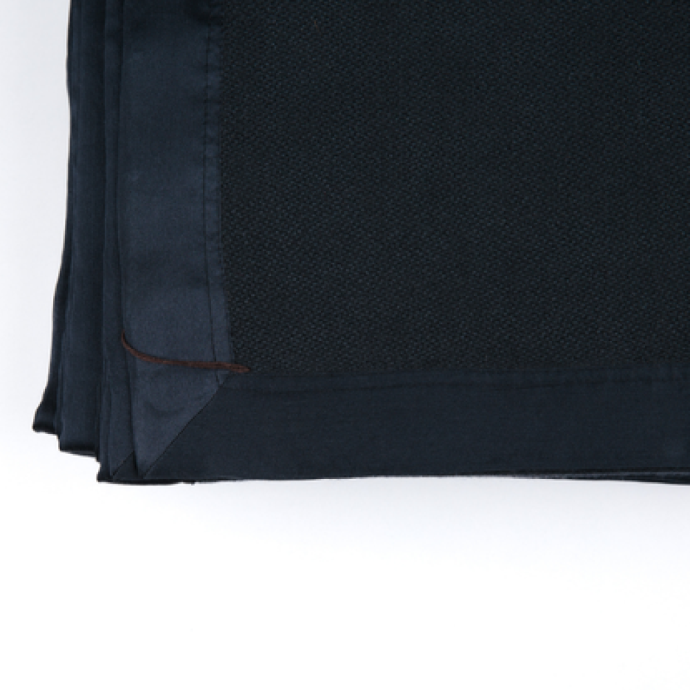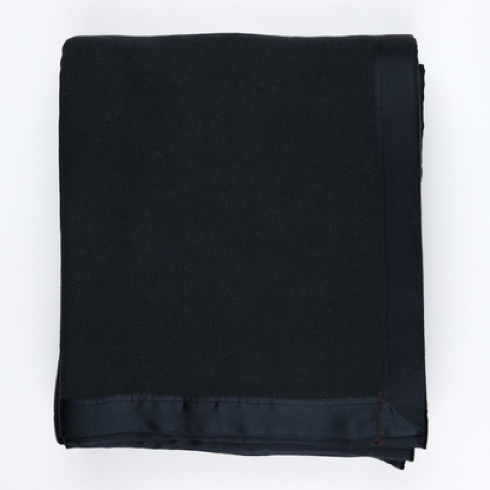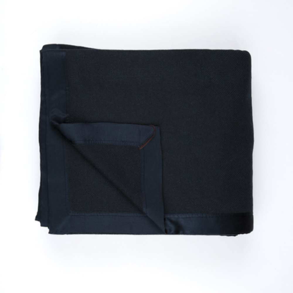 The rich indigo hue evokes a luxurious blanket that complements modern and classic colour palettes, adding to a serene atmosphere. Finished with a stunning satin silk trim, this blanket is a subtle yet powerful statement of refined taste and timeless luxury.
