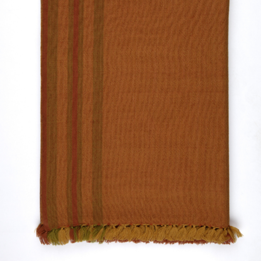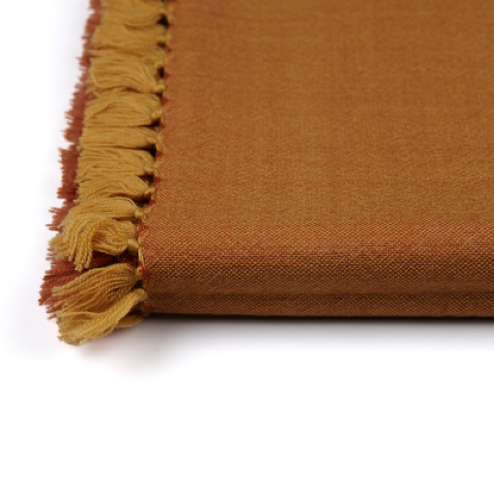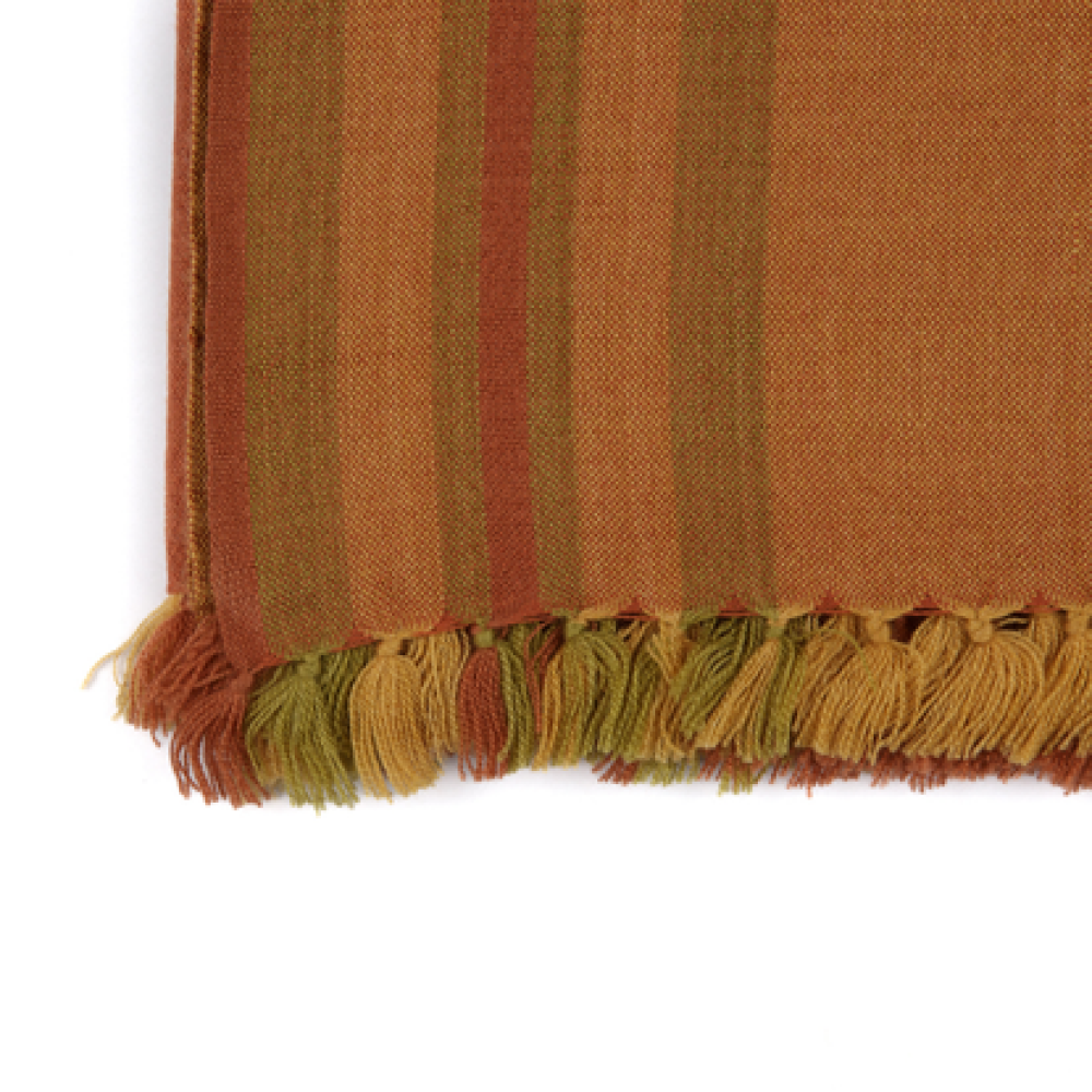 Its sophisticated orange rust and multi-color palette, accented by a single knot tassel trim, makes it a versatile piece that complements any décor. Crafted from the finest raw materials, this bespoke throw embodies timeless elegance, destined to be passed down through generations.