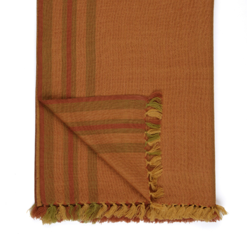 Enhance the elegance of your living space with this chic orange, rust, and multi-color throw. Intricately handwoven by Himalayan artisans using 100% premium wool, this is a throw that is naturally temperature regulating, sumptuously soft on the skin, and hypoallergenic. Measuring 60 x 72 inches and carefully woven using a gauze technique, this is not only a sustainable piece, but one that’s resilient and long-lasting.