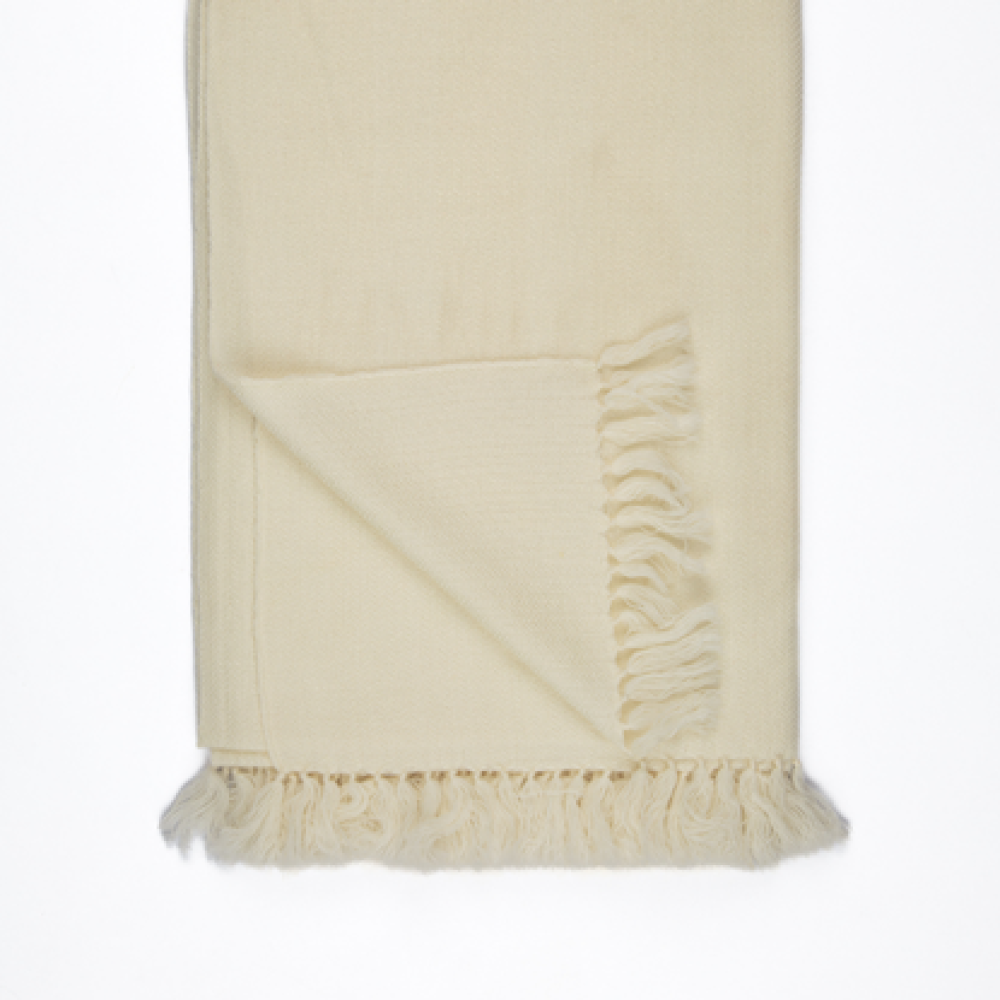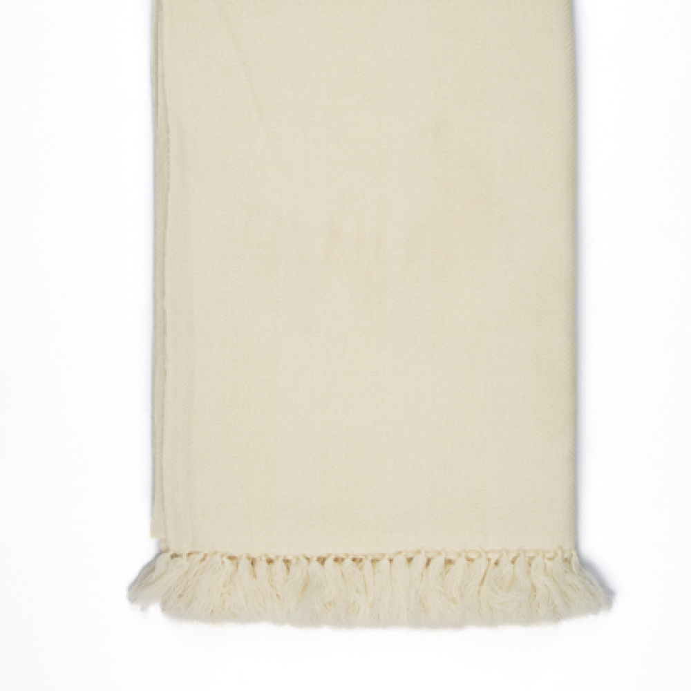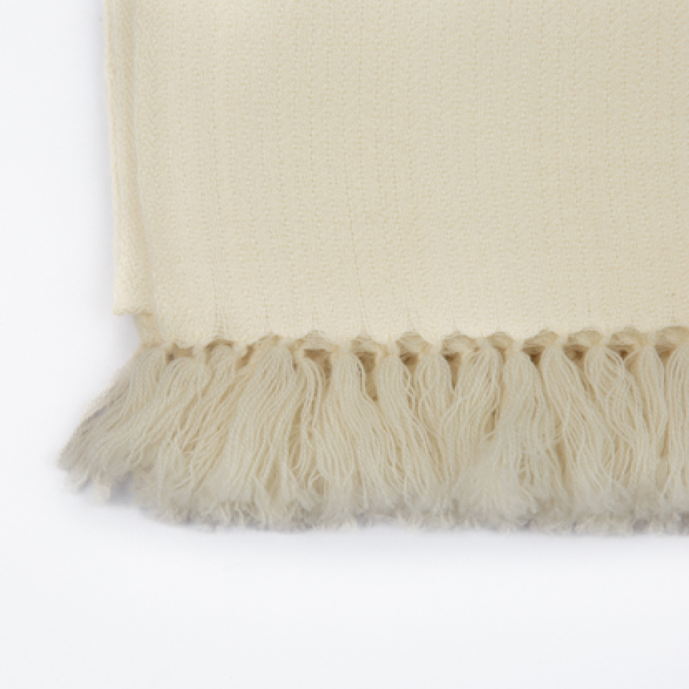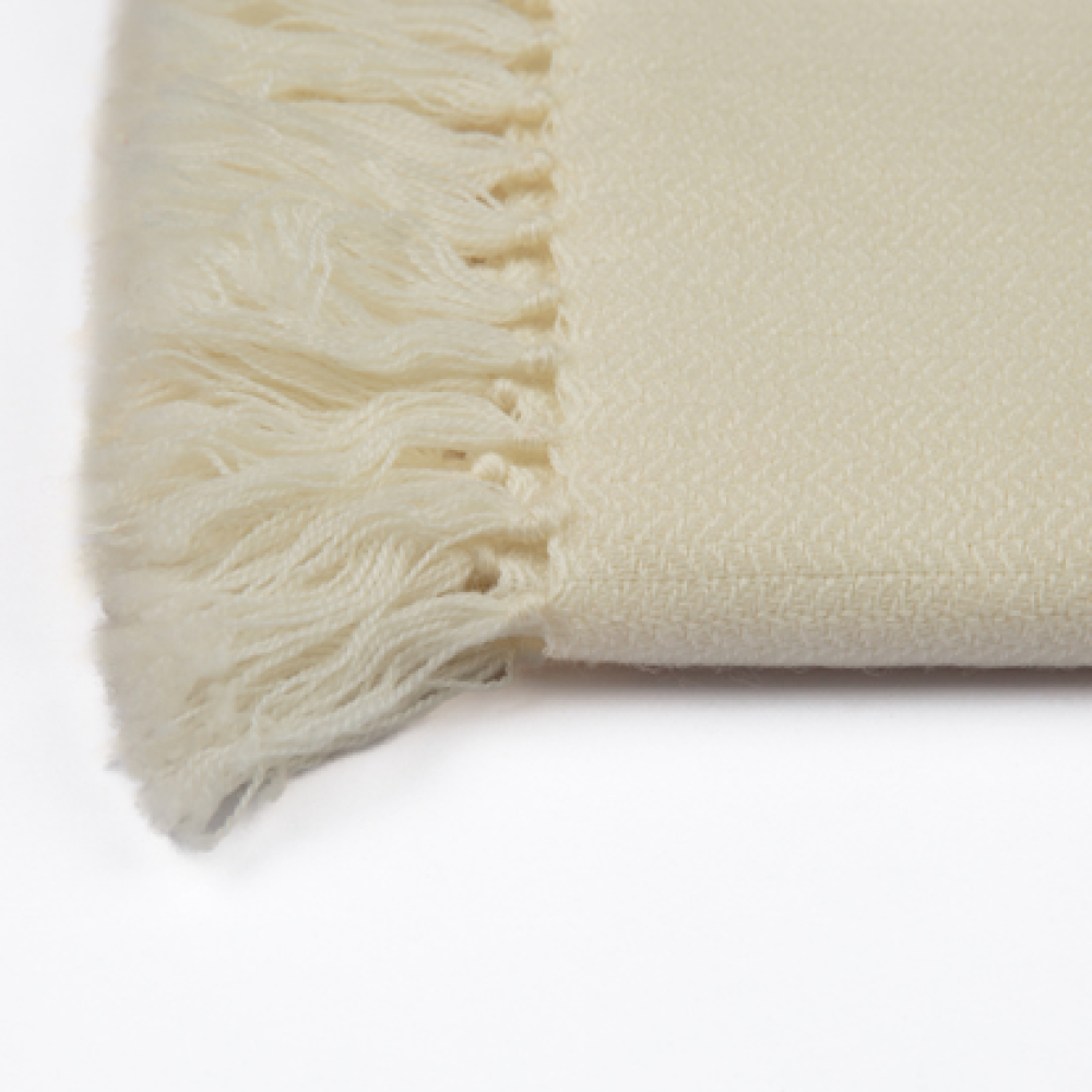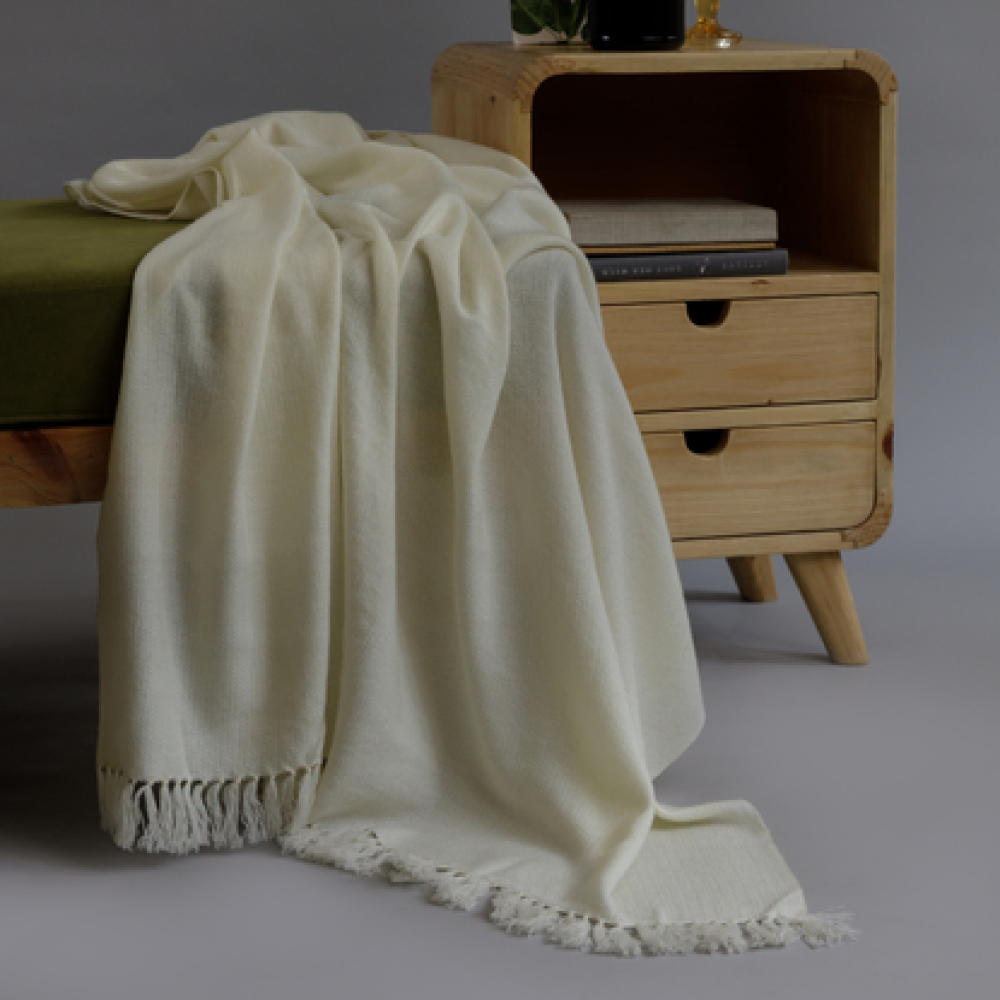 Infuse a room with quiet sophistication using this soft ecru throw. Handwoven by expert artisans from premium Himalayan wool, this hypoallergenic and sustainable piece exudes an enduring softness and superior breathability. Measuring 50 by 60 inches, it is crafted using an intricate chevron weave and finished with classic single-knot tassels, offering structural integrity alongside a sumptuous texture that gracefully withstands the passage of time.