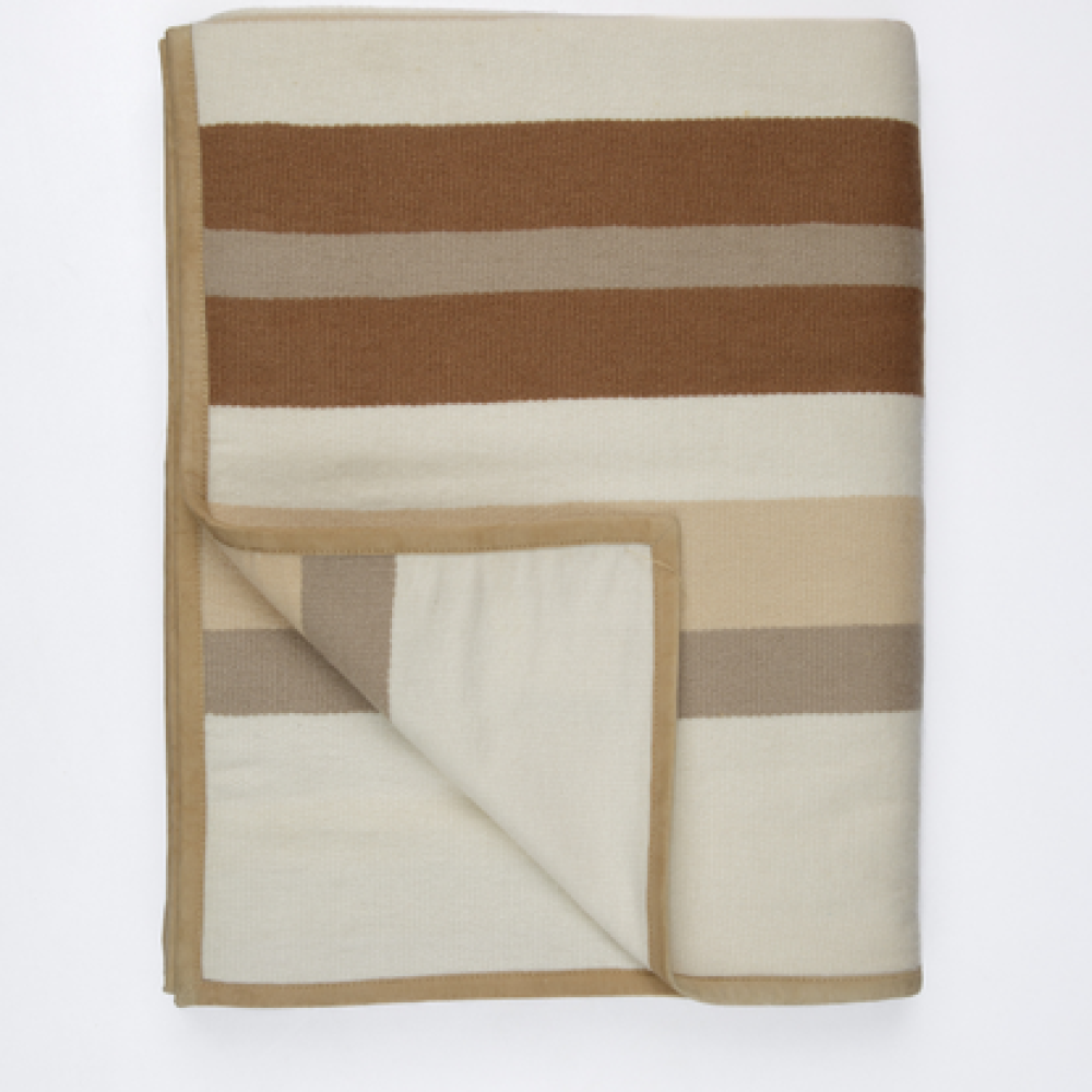 Invite a classic cultural touch to a space with this bold Navajo-inspired striped throw. Handwoven using a bespoke blend of 94 % cashmere and 6% silk, it’s a premium piece that’s luxuriously soft on the skin. Measuring 54 x 72 inches, woven using a Navajo-inspired weave and finished with a supple suede edge that enhances both durability and tactile comfort, rendering it nearly scratch-resistant while maintaining its velvety texture.