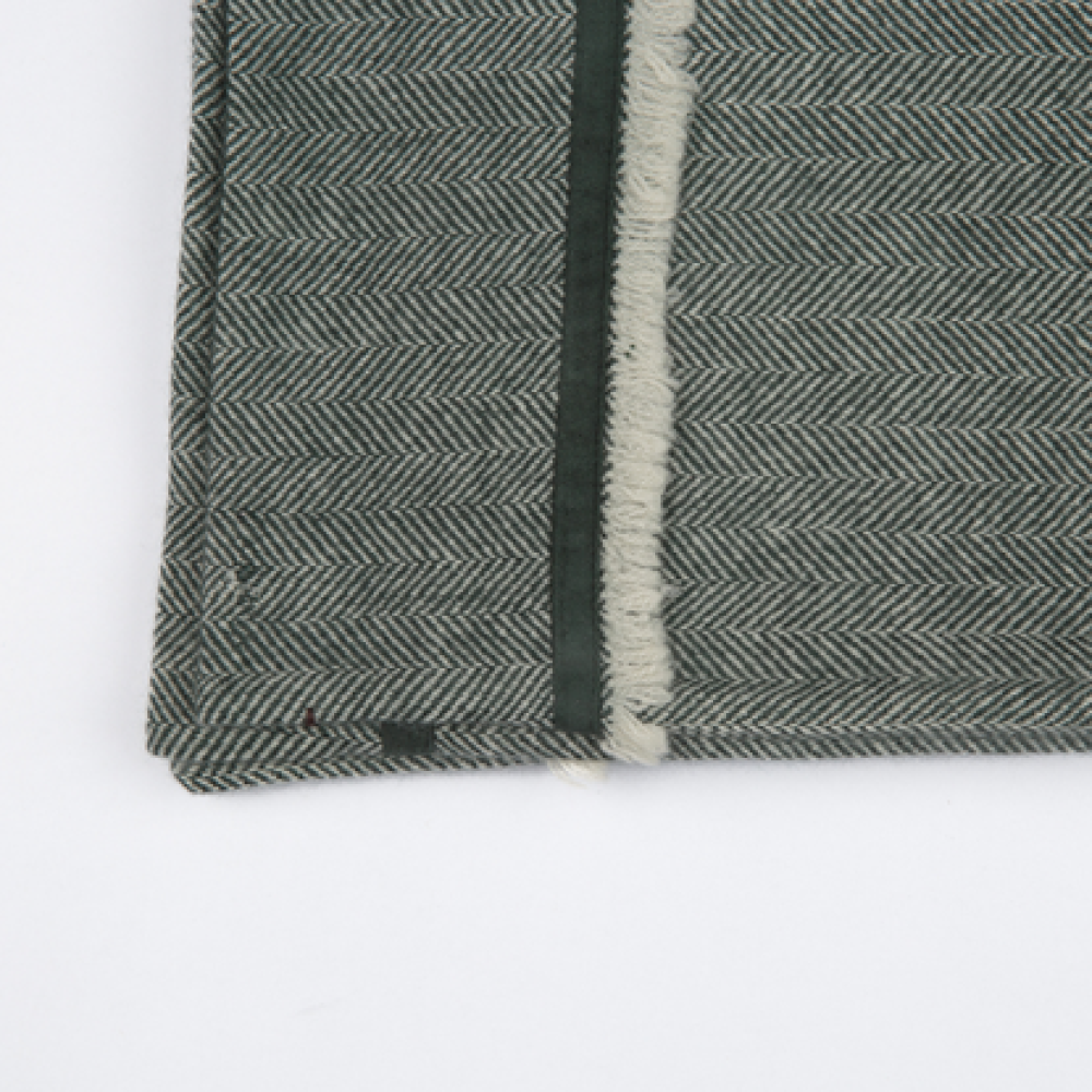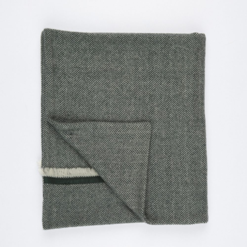 Relax with this plush and understated storm and ecru comfy cushion. Expertly crafted from 100% premium cashmere by Himalayan artisans, this sumptuous, soft piece is perfect for a chair or sofa. Measuring 22 x 25 inches, this piece is woven using a herringbone technique and features a seamless stitch finish, providing a distinct zig-zag pattern that adds a refined elegance to any room.
