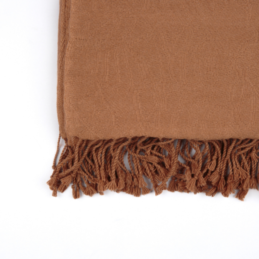 The subtle natural hazel shade imbues any room with a grounded, serene ambiance. This throw harmonizes beautifully with dark wood furnishings, crisp white trims, and organic textiles, enriching interiors with an organic, sophisticated warmth.