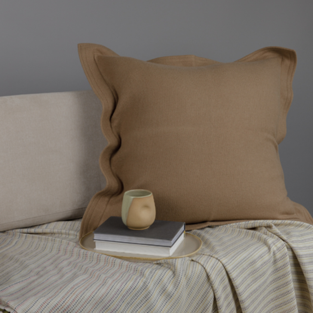 Enhance your living space with this stunning natural throw pillow. Handcrafted from 100% premium camel hair and meticulously handwoven by Himalayan artisans. Measuring 30 x 30 inches, using a sophisticated weft back weave technique and finished with a self trim, delicate fibers are preserved and maximum insulation of camel hair is maintained.