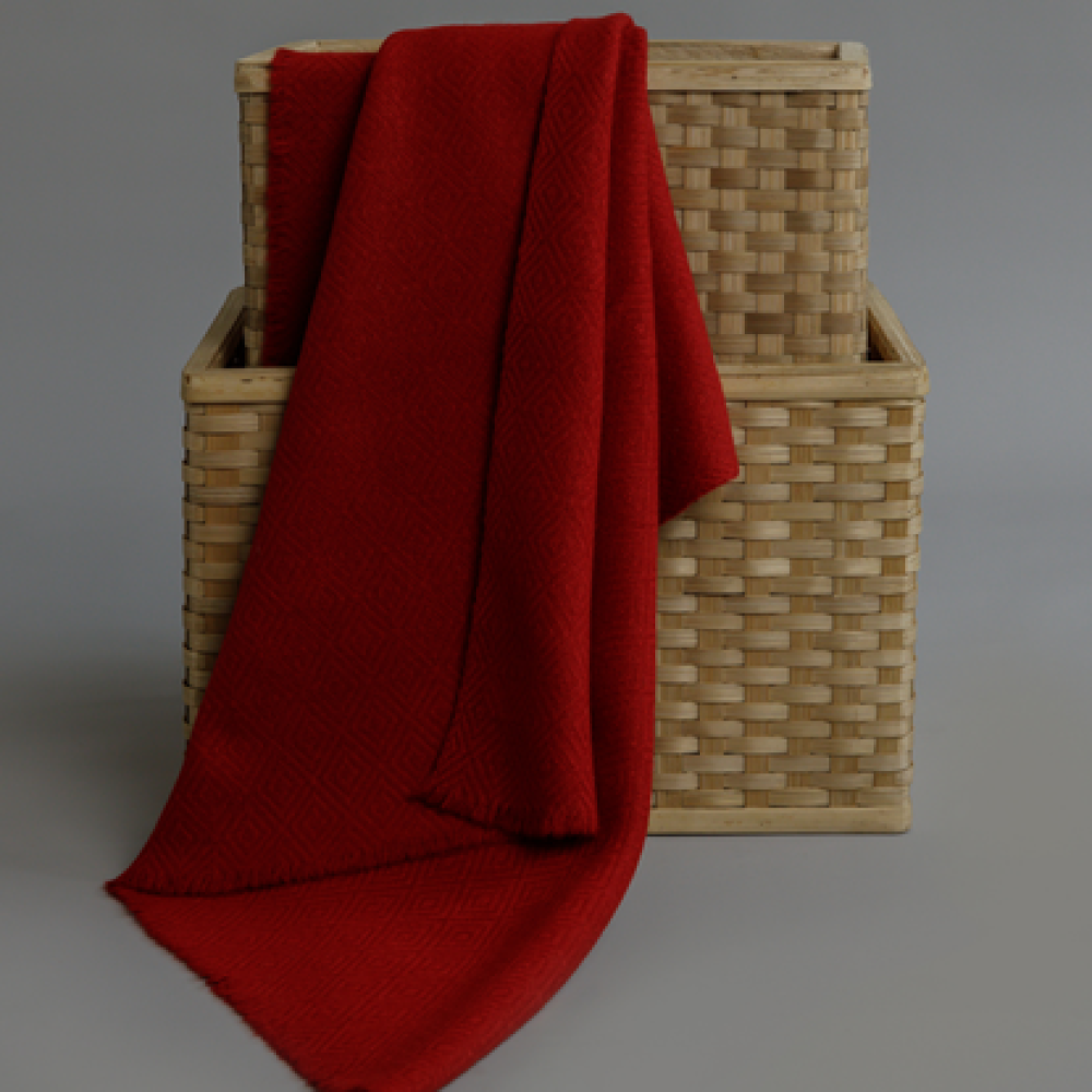Layer up a little one with this bold Rio red baby blanket. Handwoven by Himalayan artisans using a custom blend of 20% cashmere, 35% cotton fiber, and 45% silk, it's hypoallergenic, breathable, and sumptuously soft against the skin. Measuring 26 x 34 inches, this piece is woven with a weft back technique and finished with a spun silk trim, ensuring effortless breathability that allows it to flow fluidly over shoulders or cribs.