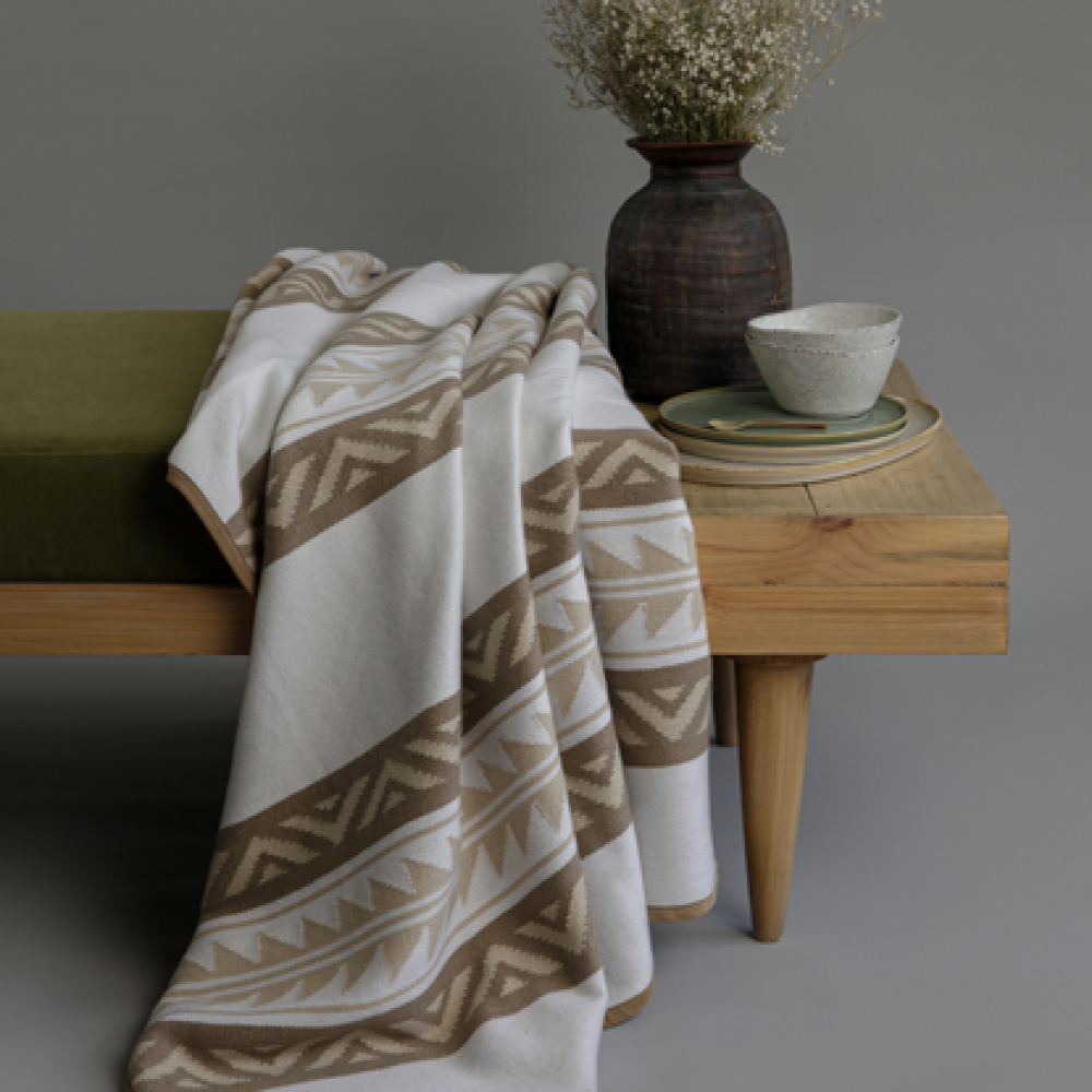 Each Navajo-inspired throw is more than a blanket — it’s a tapestry of history, artistry, and soul. Drawing on centuries-old weaving techniques, our artisans create hand-woven, hand-finished pieces that honor the intricate patterns and symbolism of traditional Navajo textiles. Crafted from 94% cashmere 6% silk, each bespoke creation blends egret, tapioca and nougat with the warmth and softness of 94% cashmere 6% silk. Perfect for adding depth, texture, and cultural richness to your space, it’s a true artisanal masterpiece that offers both extreme luxury and a tangible connection to ancient textile traditions.