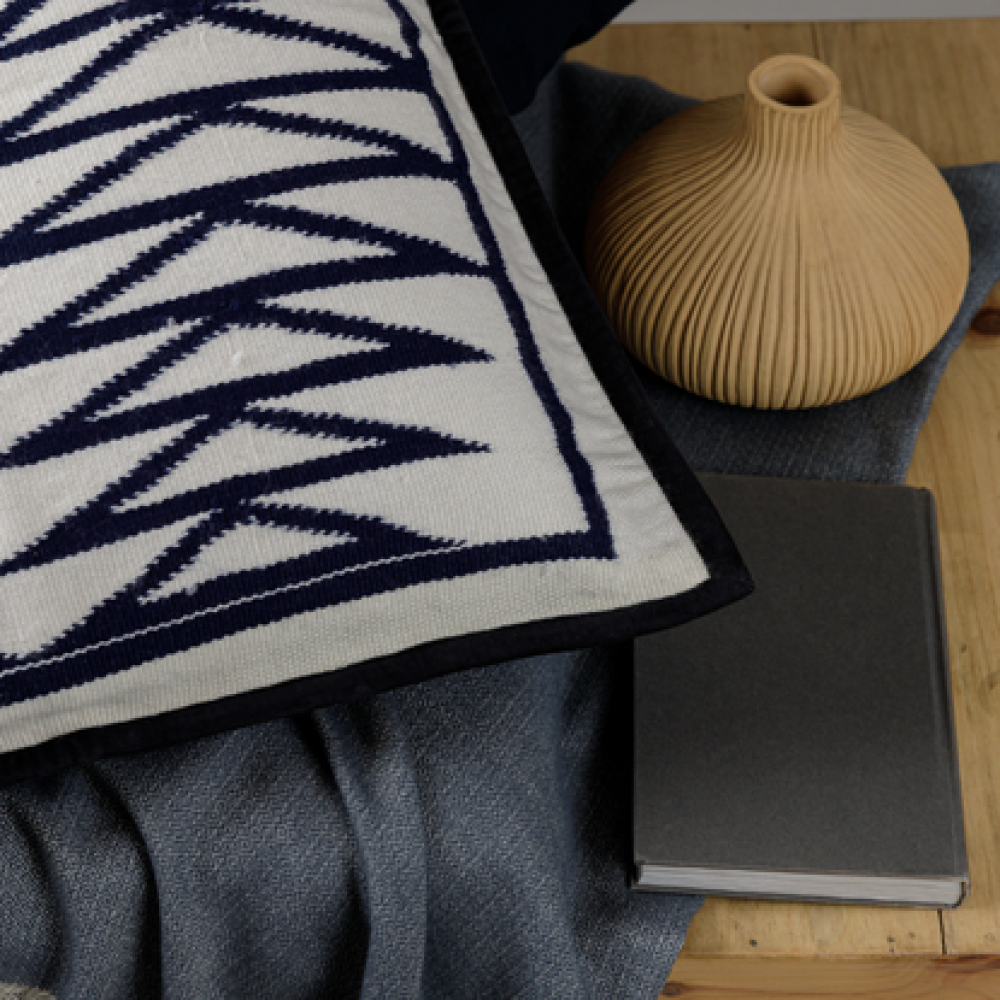 Its rich palette of deep cobalt and egret adds a striking contrast and balance to a room, creating a calming and striking energy. Lightweight, yet naturally durable and hypoallergenic, this pillow is ideal for all skin types and seasons.