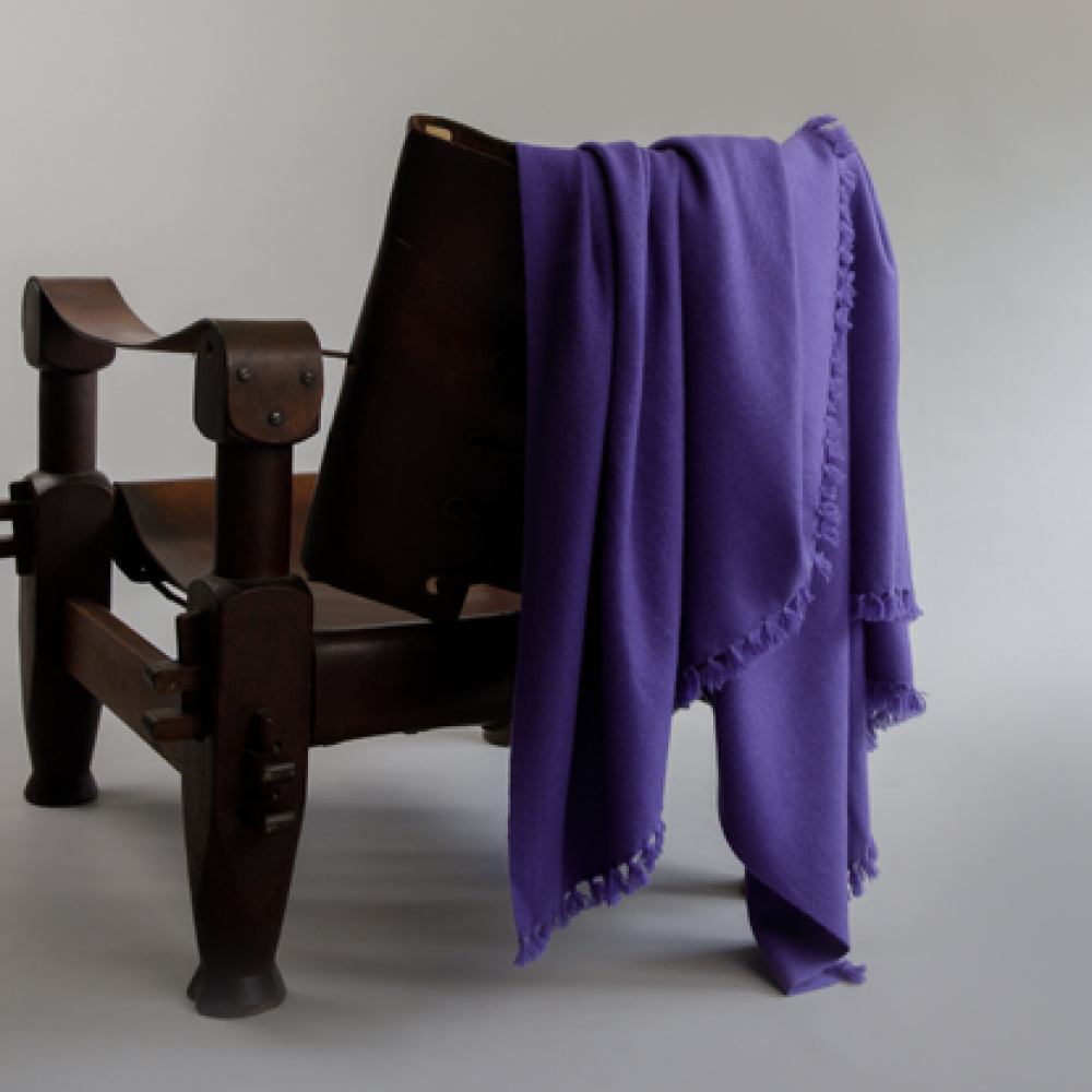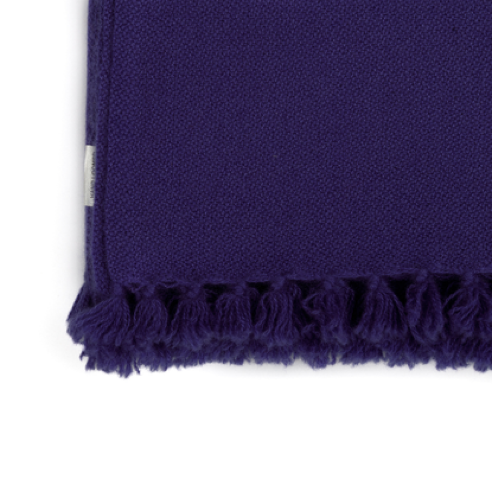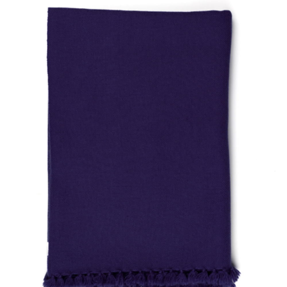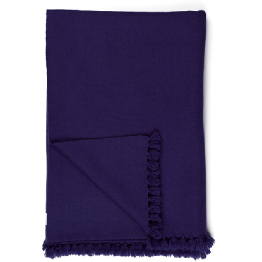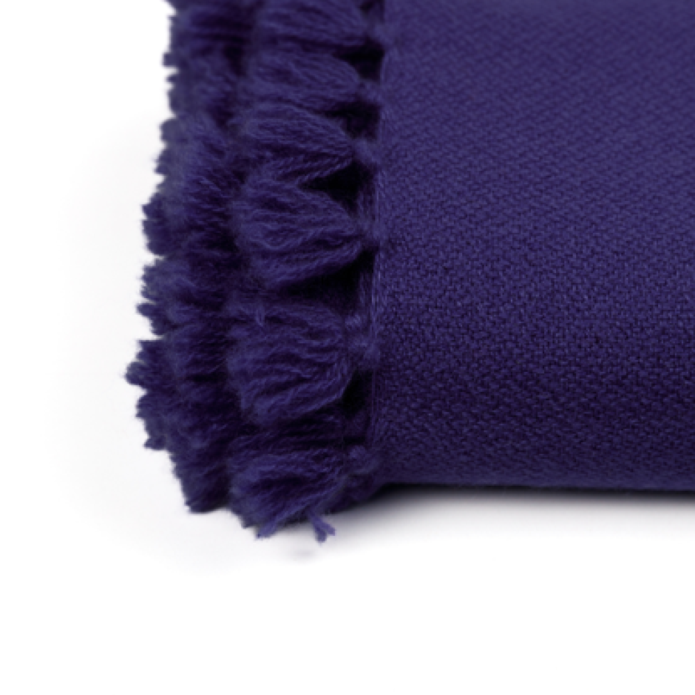 Enhance the ambience of any interior space with this luxurious ultraviolet cashmere throw. Masterfully handwoven by skilled Himalayan artisans from 100% premium cashmere, this throw has a premium plush texture and gentle softness. Measuring a generous 50 by 70 inches, the throw boasts a classic twill weave, exquisitely finished with timeless crew cut tassels, harmonizing breathability with style.