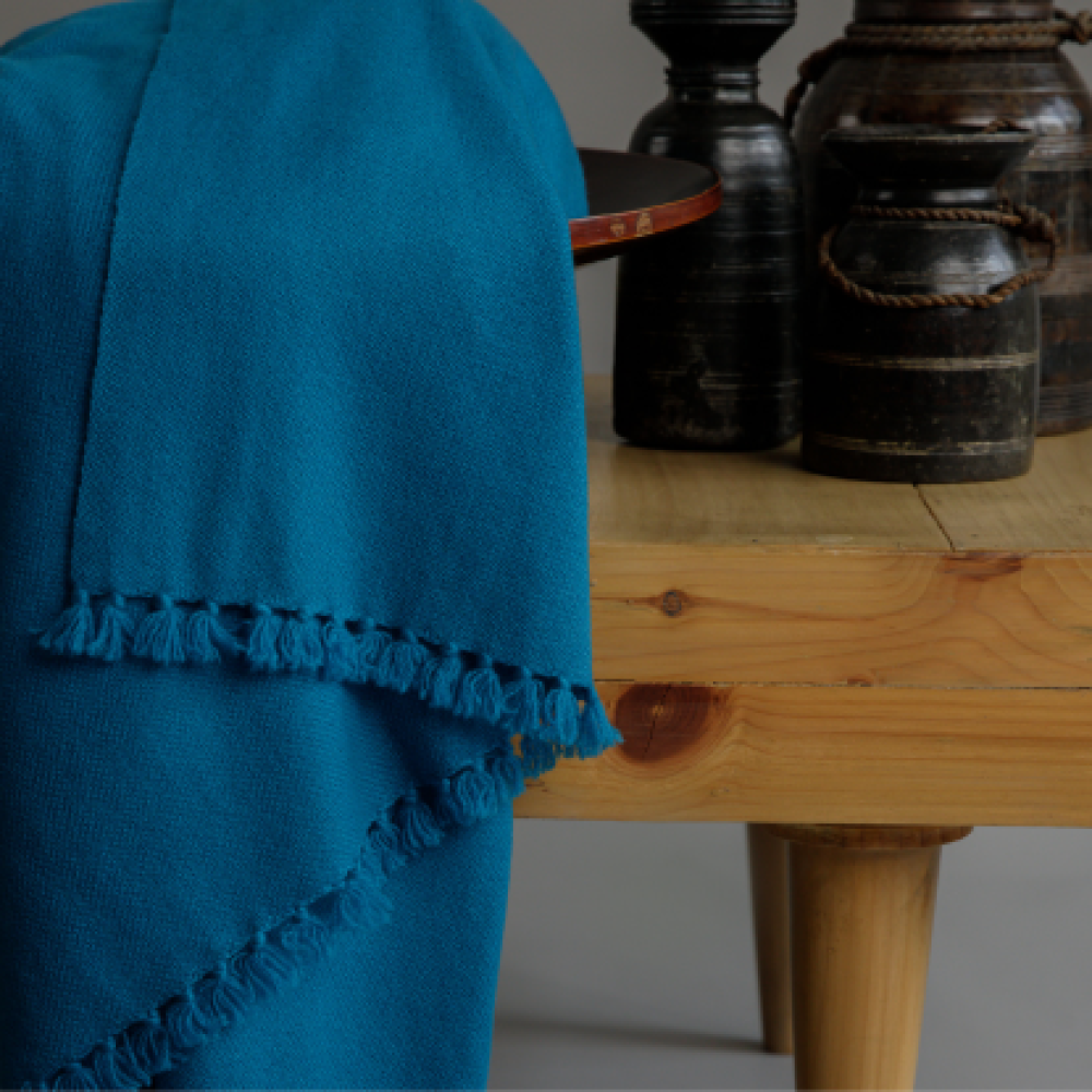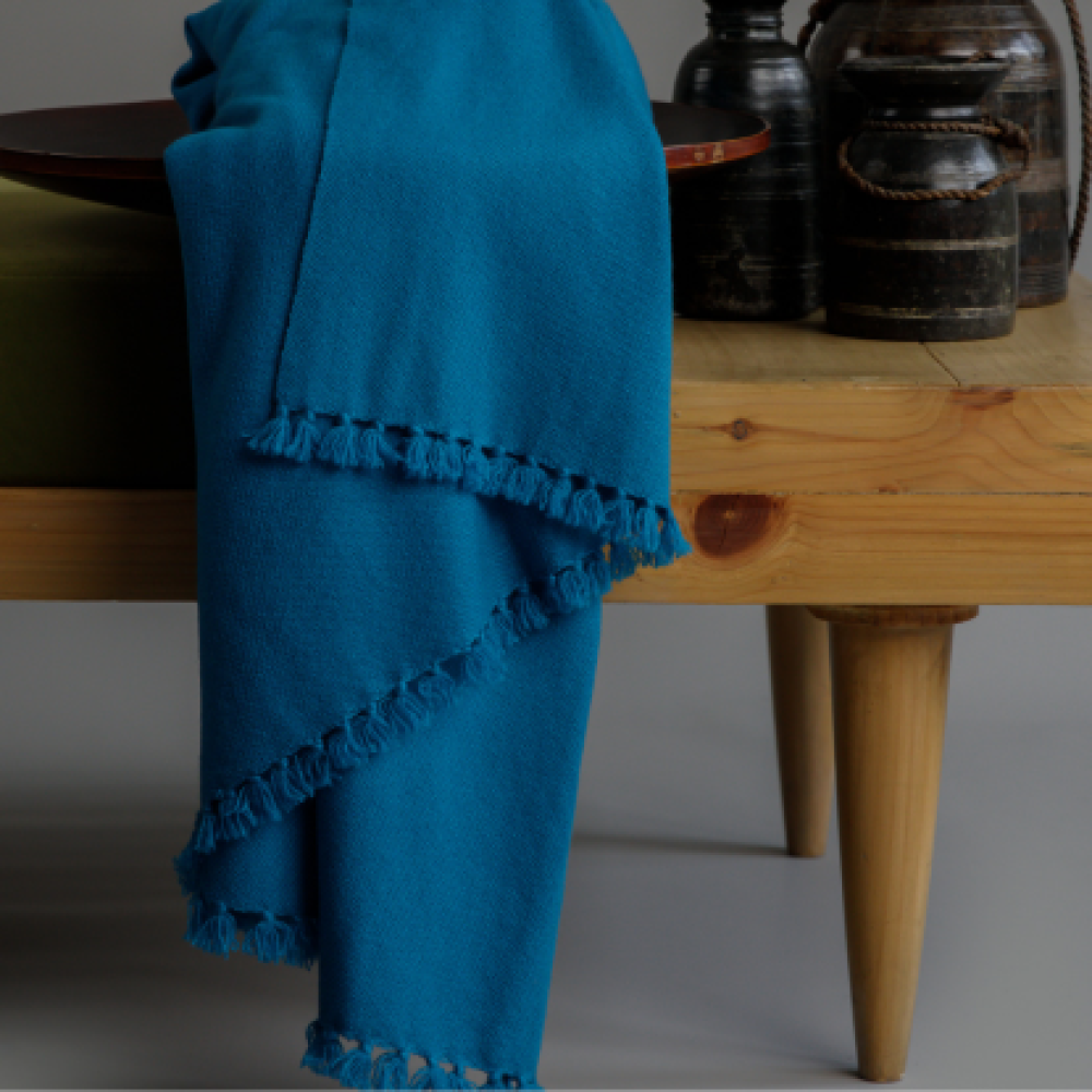Transform a room's ambience with this tranquil methyl blue throw. Intricately handwoven using 100% premium cashmere by Himalayan artisans, it’s a lavish piece that brings a modern sophistication and timeless charm. Measuring 50 x 70 inches and handwoven using a weft back technique, finished with single knot tassels, perfect for draping effortlessly over sofa, chairs or beds.