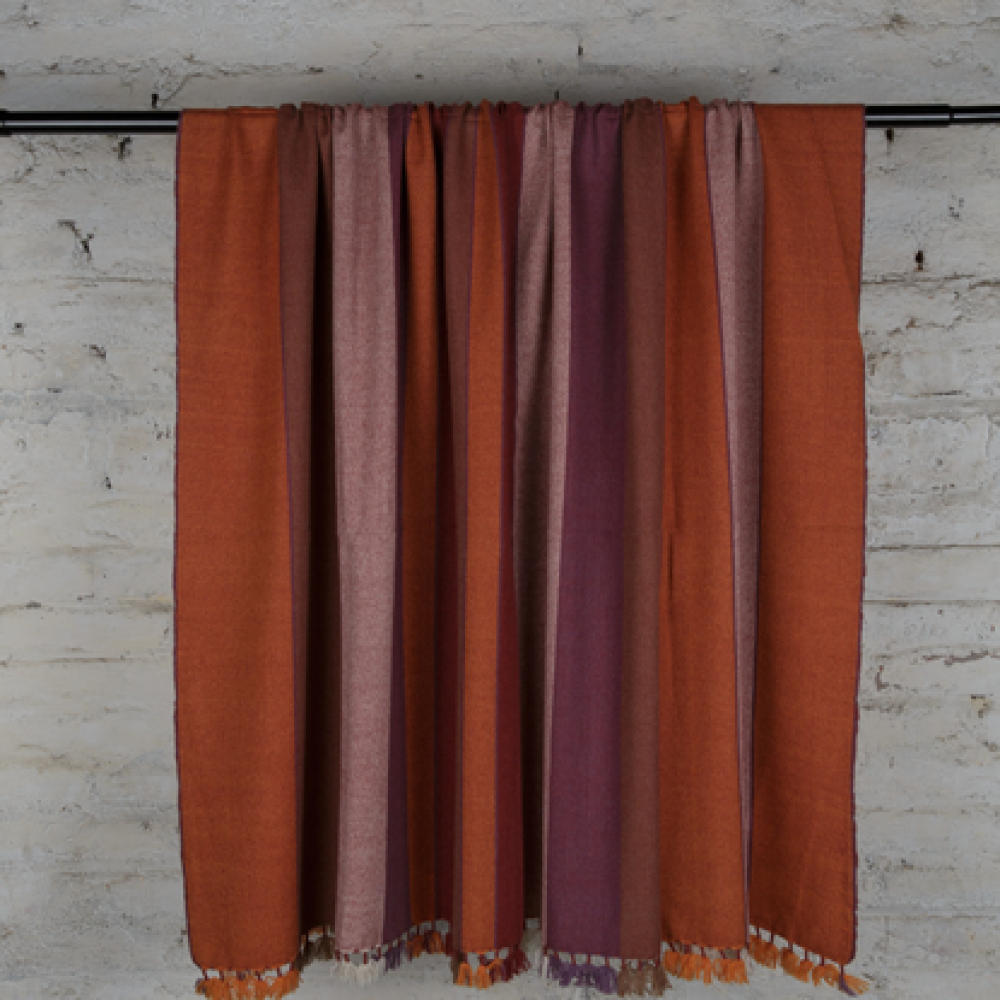 Enhance a living space with this stunning deep earthy browns and red Naga-inspire throw. Handwoven using 100% premium cashmere by Himalayan artisans, it’s a visually striking piece that draws on the inspiration of designs from Nagaland tribes. Measuring 54 x 70 inches, woven using a gauze weave and finished with Naga-style tassels, it’s a chic piece that’s incredibly warm and plush to touch.