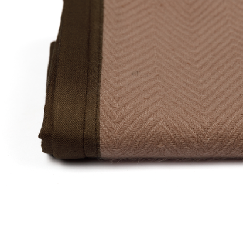 A bespoke heirloom creation crafted with zig-zag techniques to preserve soft delicate fibers and breathability. Available in antler, a gentle hue that complements any color palette.